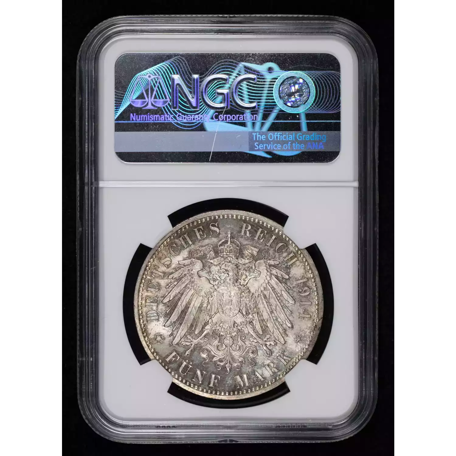 1914A-German States Anhalt-Dessau Silver 5 GERMAN STATES Silver MARK NGC MS-64