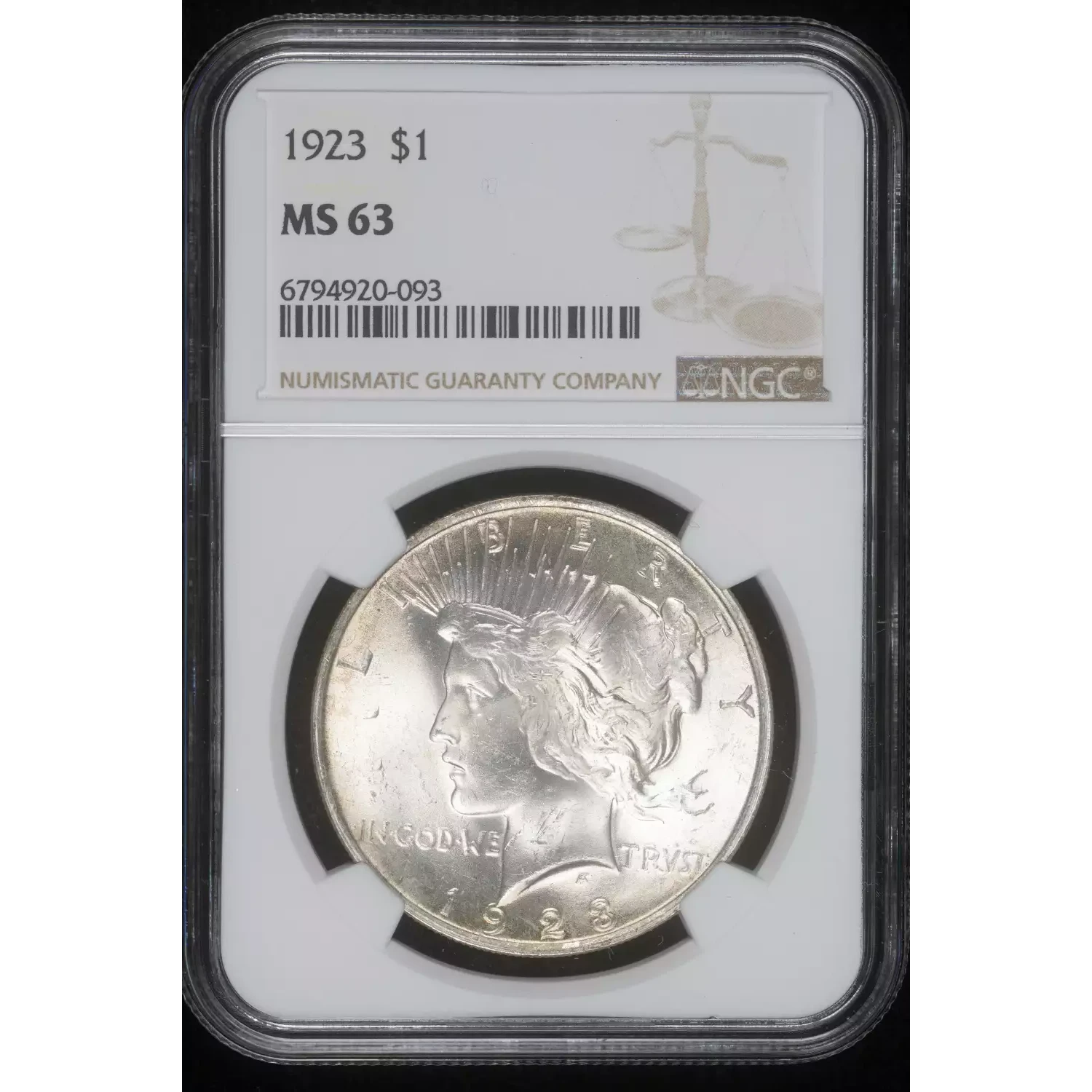 1923 Peace Silver Dollar NGC MS-63