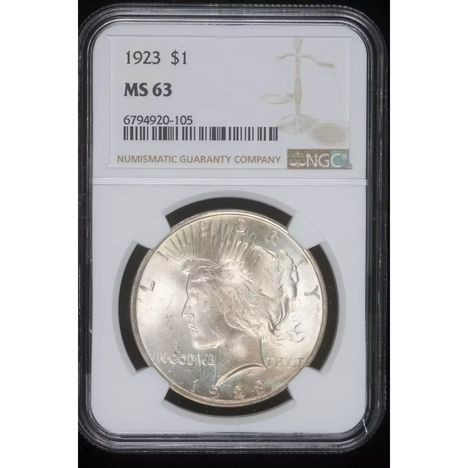1923 Peace Silver Dollar NGC MS-63