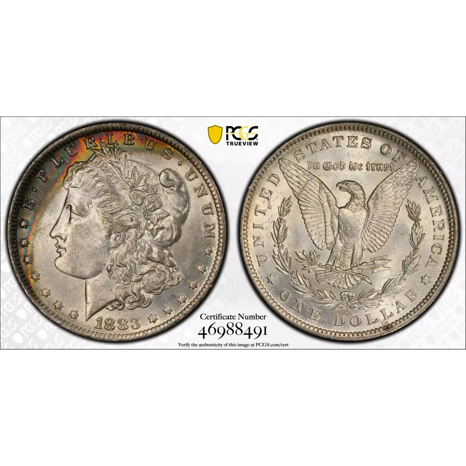 1883-O $1 1st Generation Holder Rainbow Toning