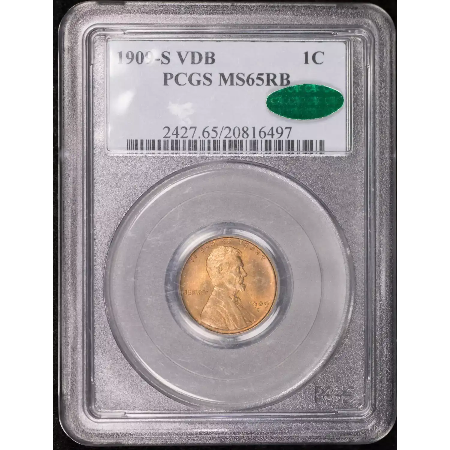 1909-S VDB Small Cents Lincoln, Wheat Ears Reverse PCGS MS-65 RB CAC CAC