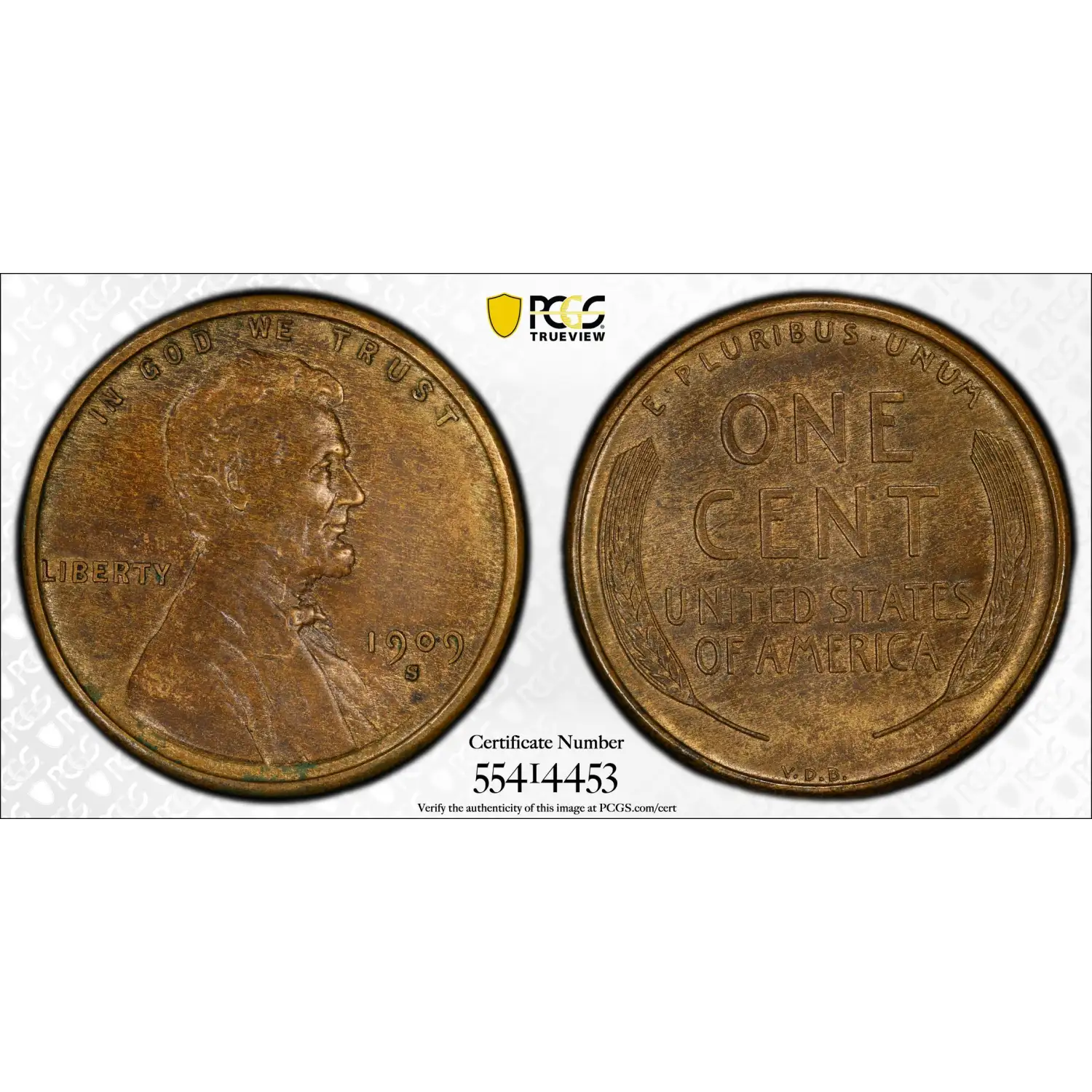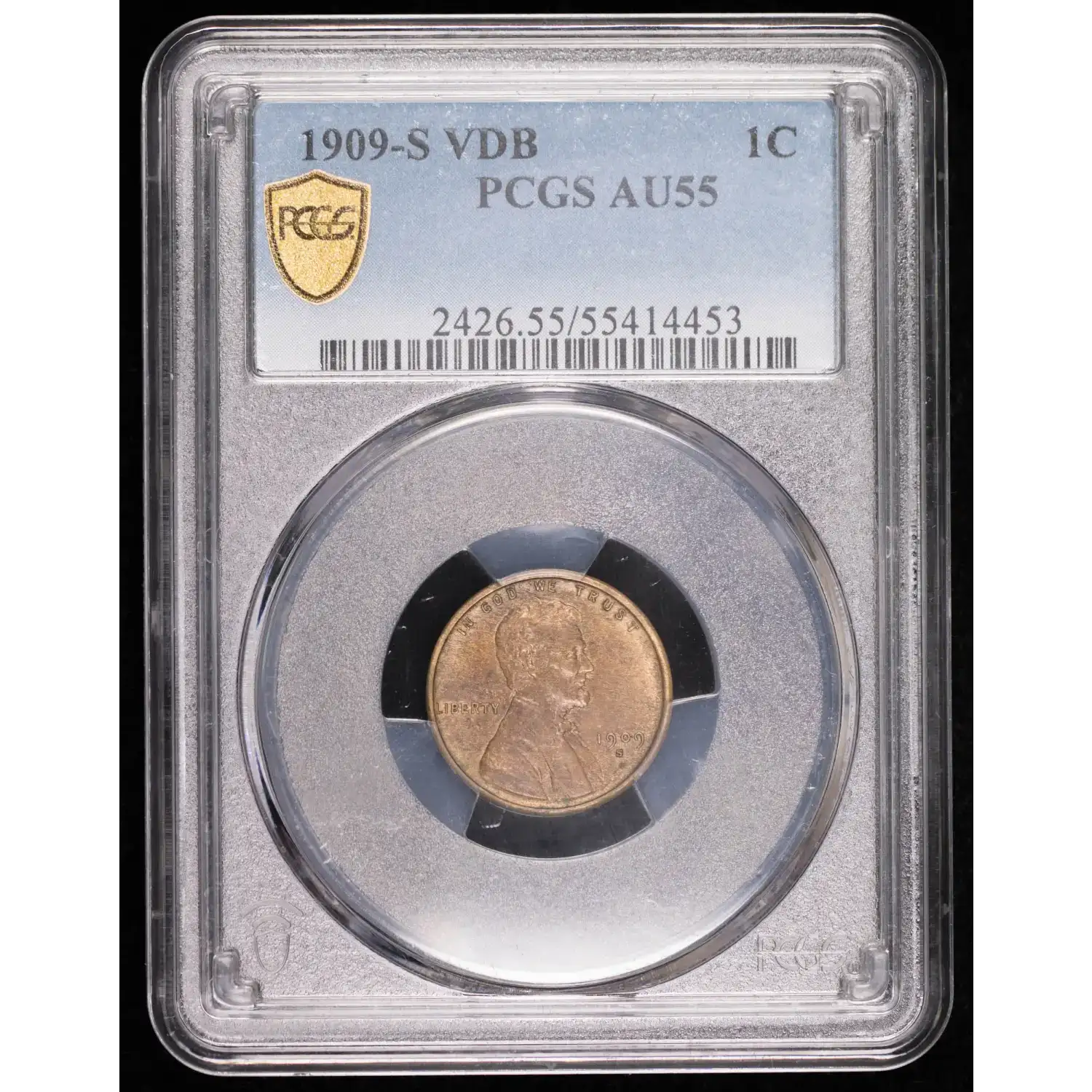 1909-S VDB Small Cents Lincoln, Wheat Ears Reverse PCGS AU-55 BN