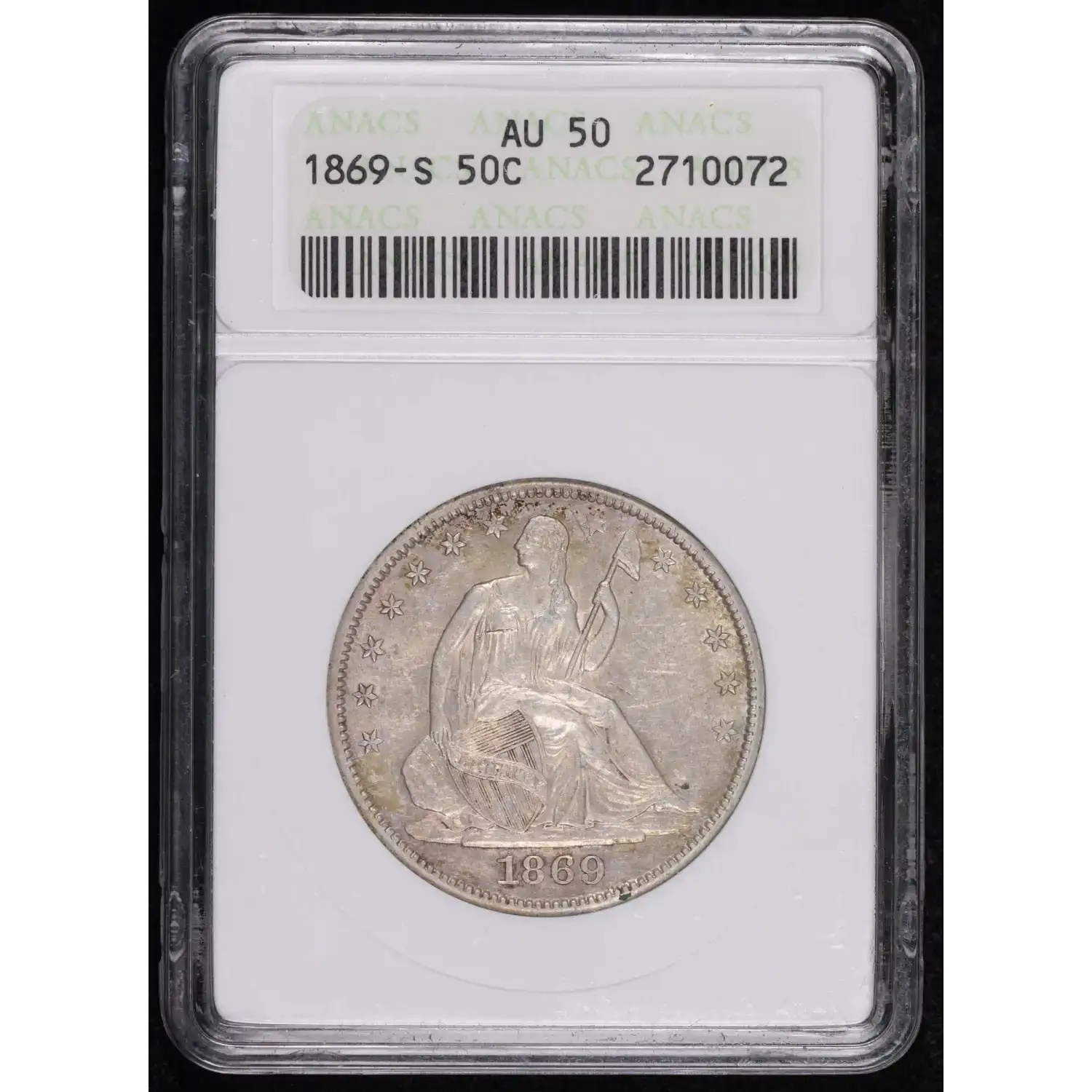 1869-S Half Dollars Liberty Seated ANACS AU-50 SoapBox