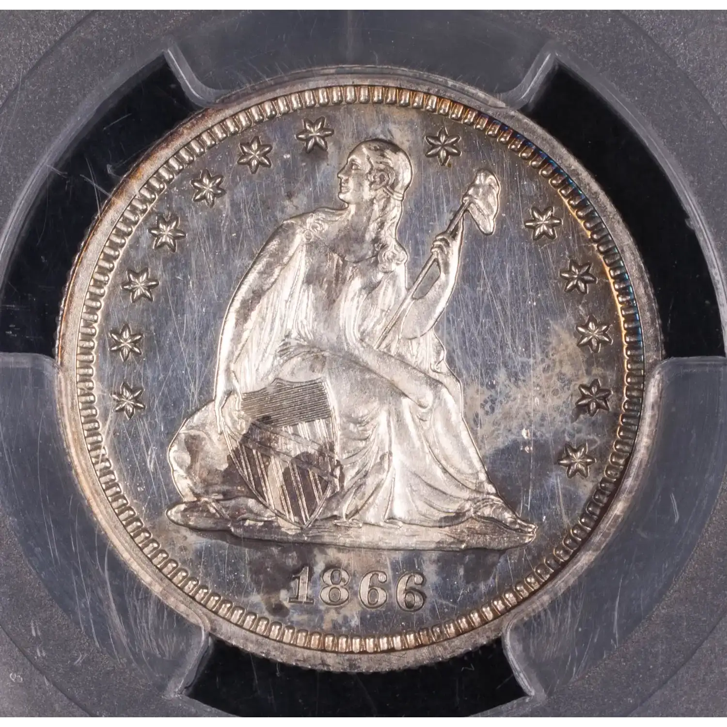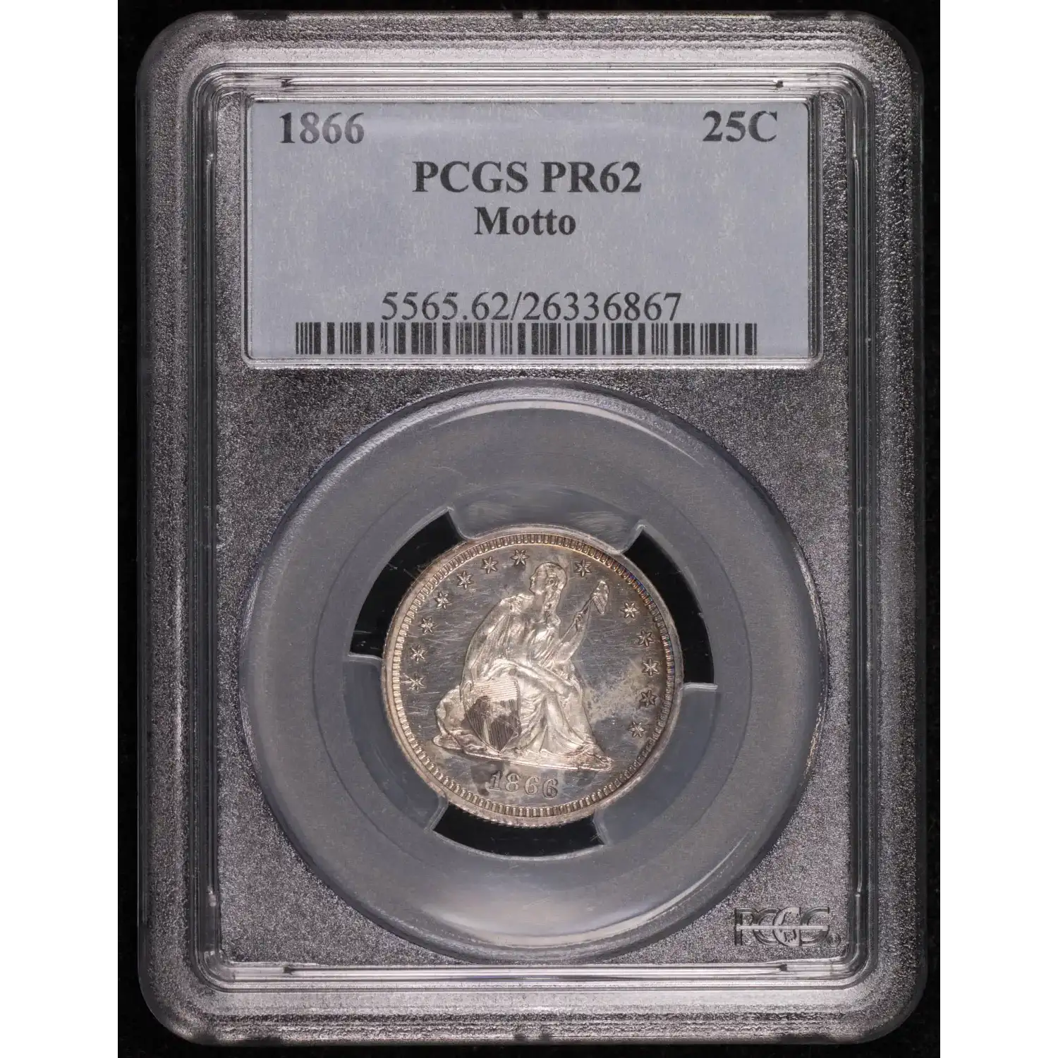 1866 Seated Liberty Quarter PCGS PR-62 Motto Proof