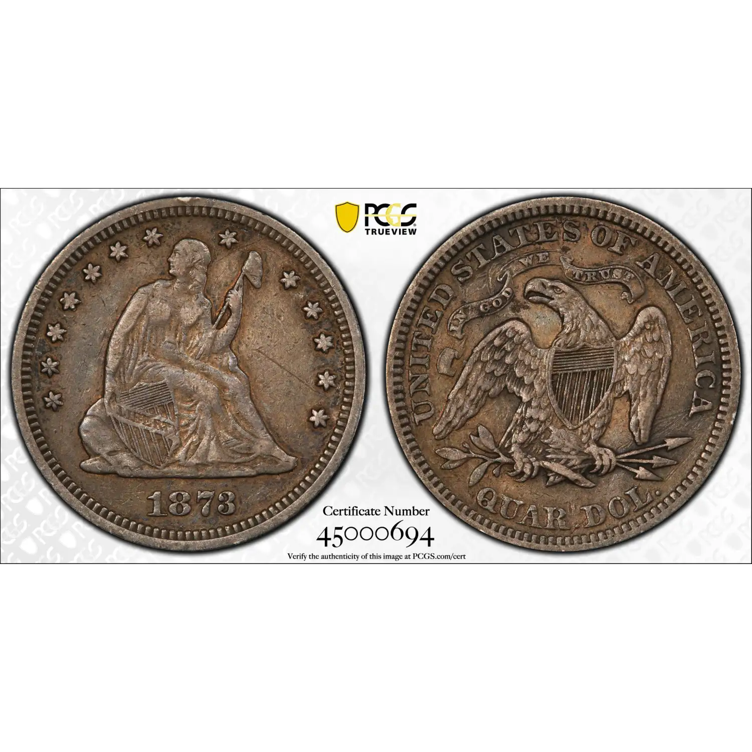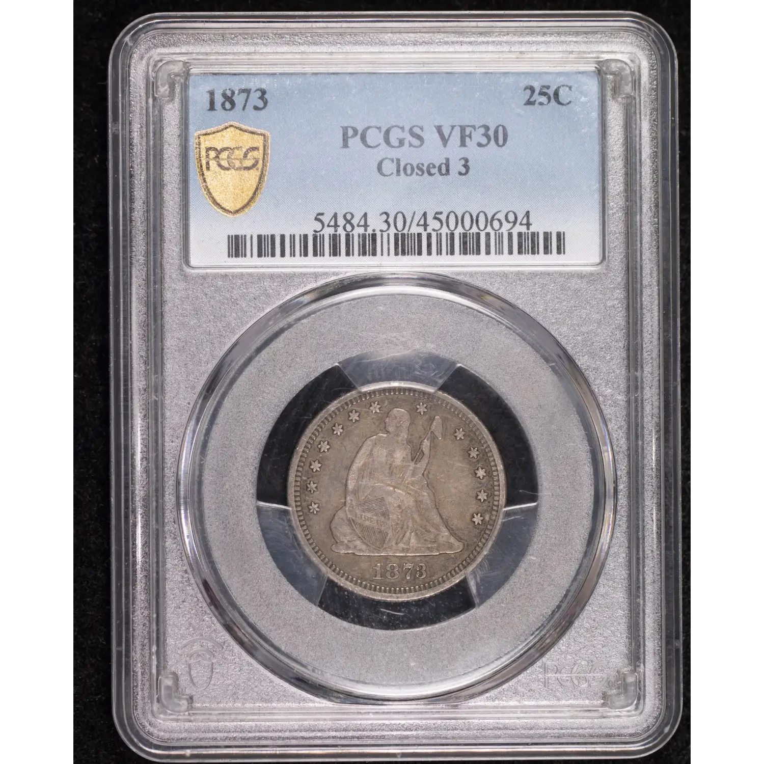 1873 Seated Liberty Quarter PCGS VF-30 No Arrows, Closed 3
