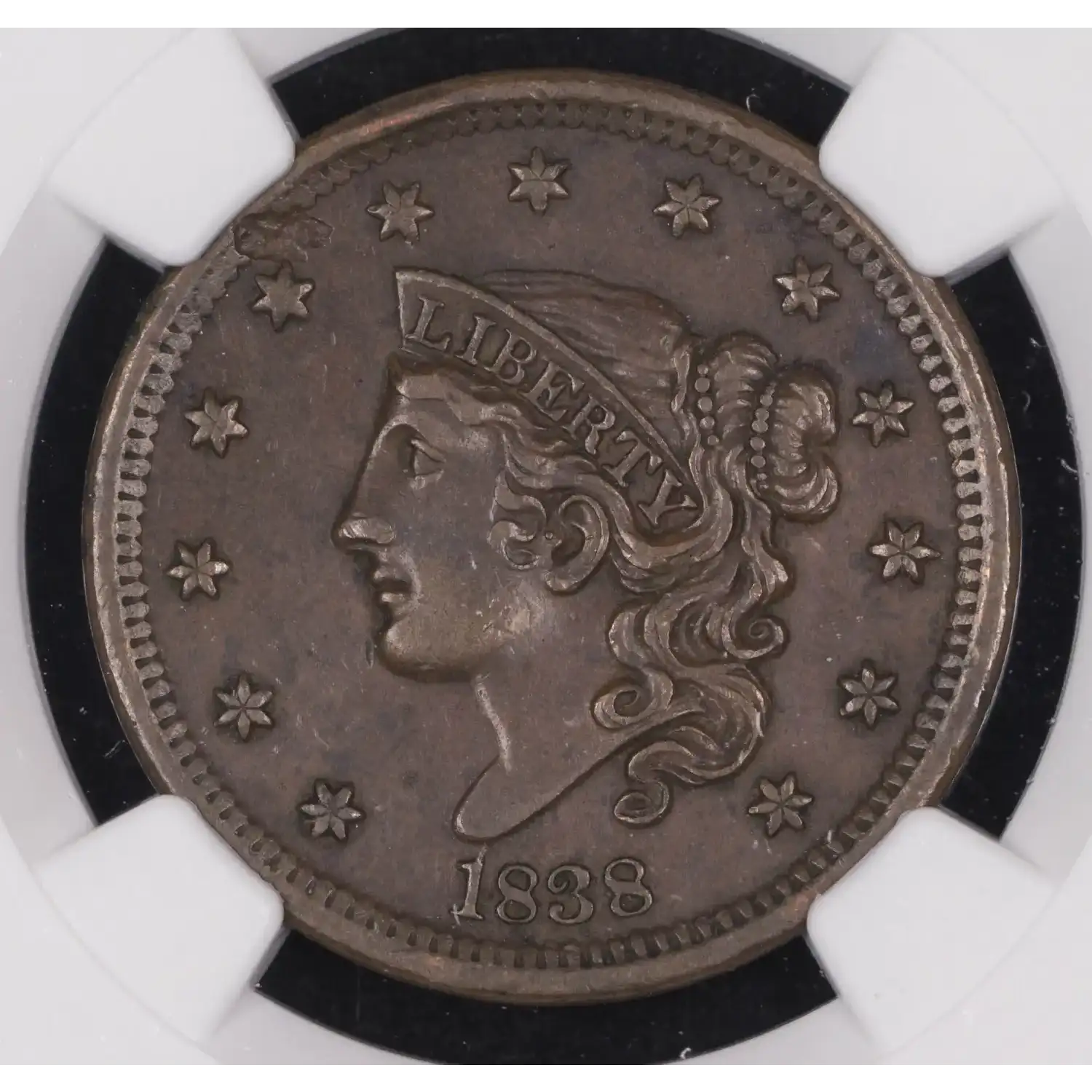 1838 Braided Hair Cent NGC AU-53 BN