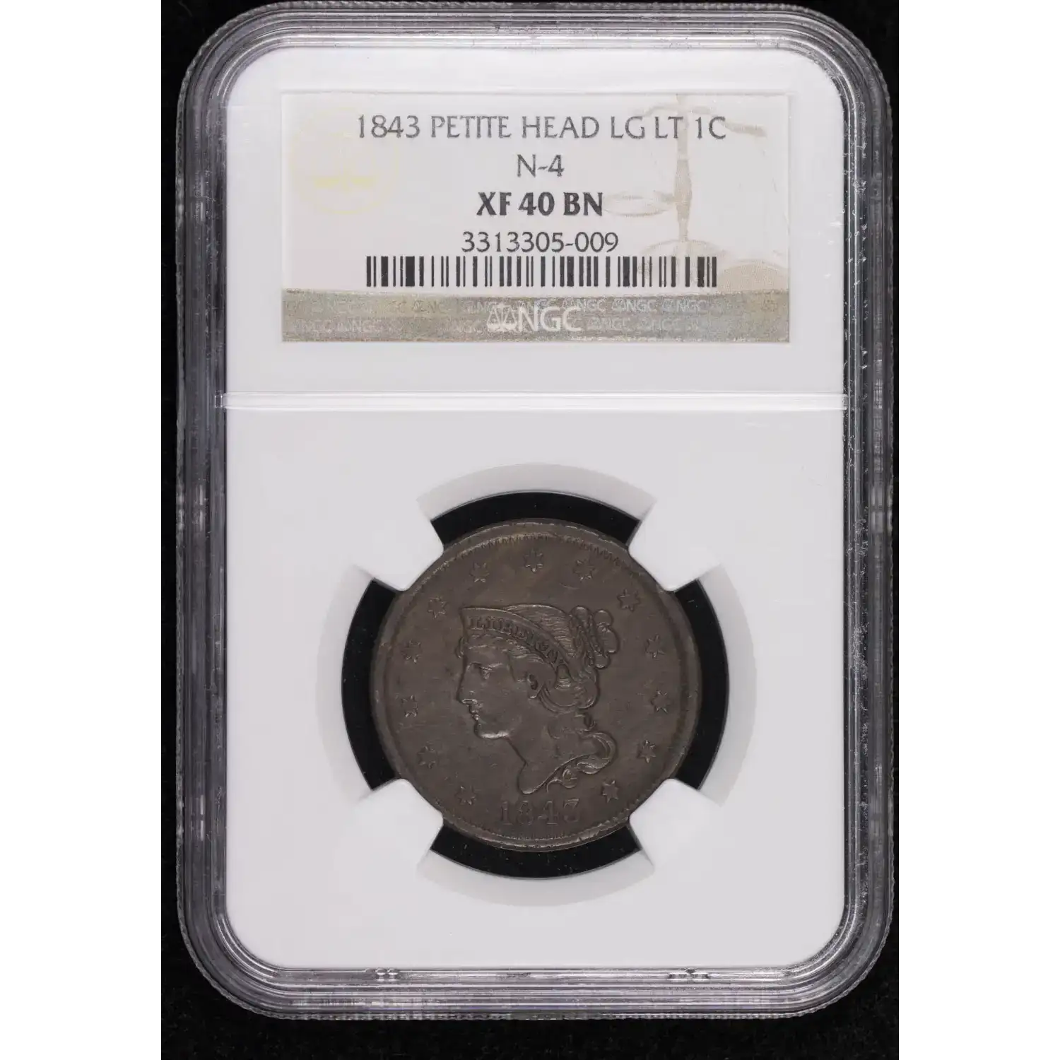 1843 Braided Hair Cent NGC XF-40 BN N-4 Petite Head