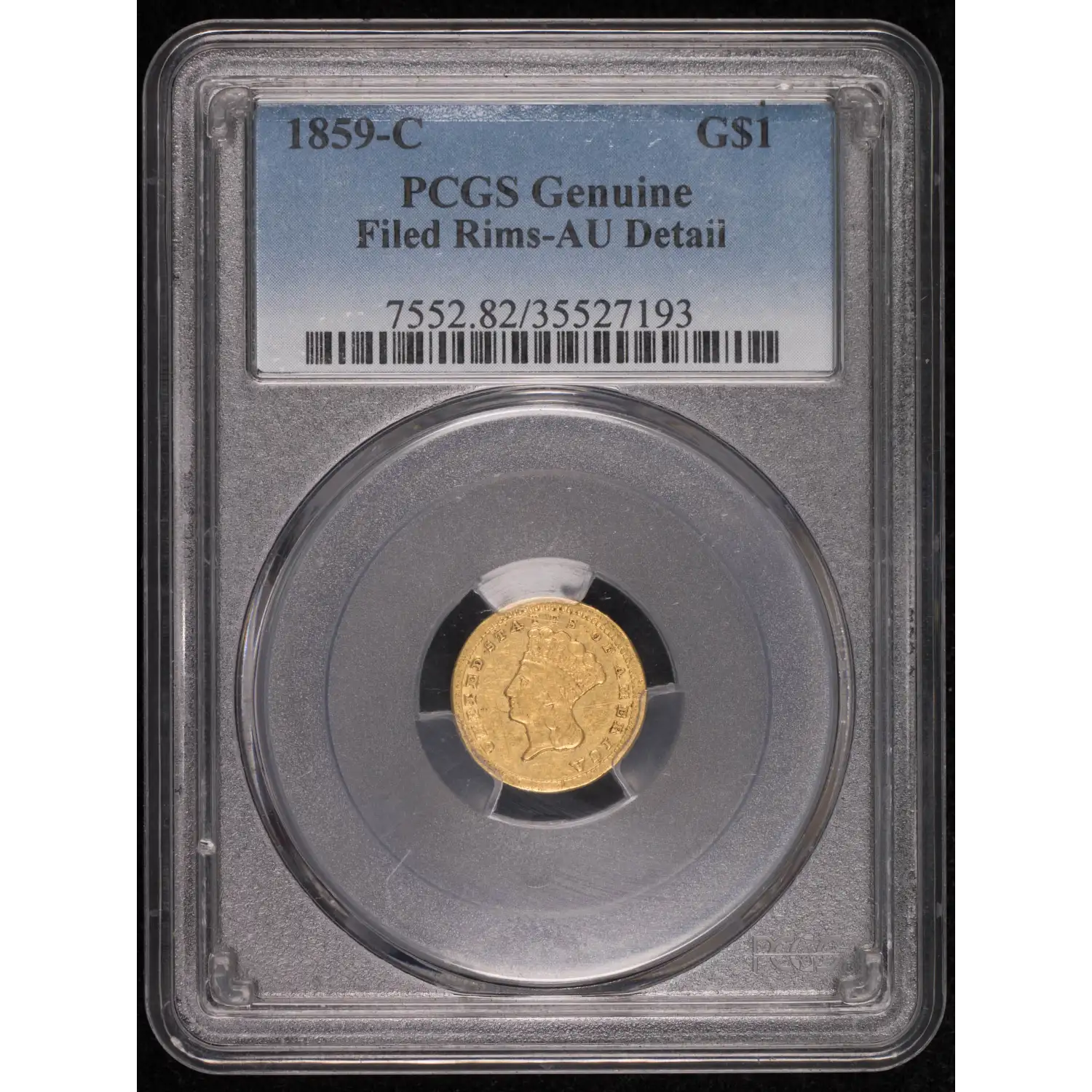1859-C Indian Princess Large Head Gold Dollar PCGS Genuine - AU Details (82 - Filed Rims)