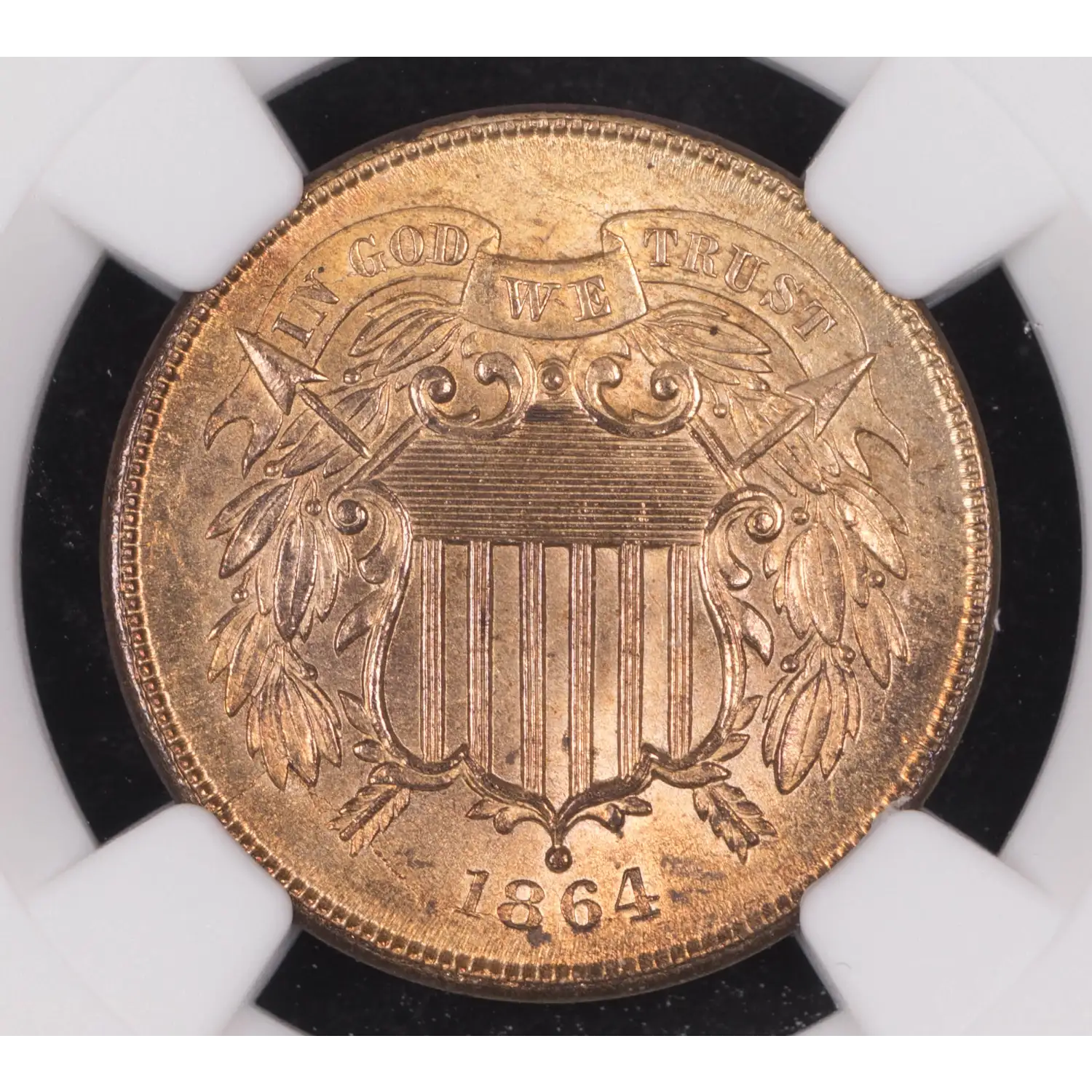 1864 Two cent pieces NGC MS-65 RD Large Motto