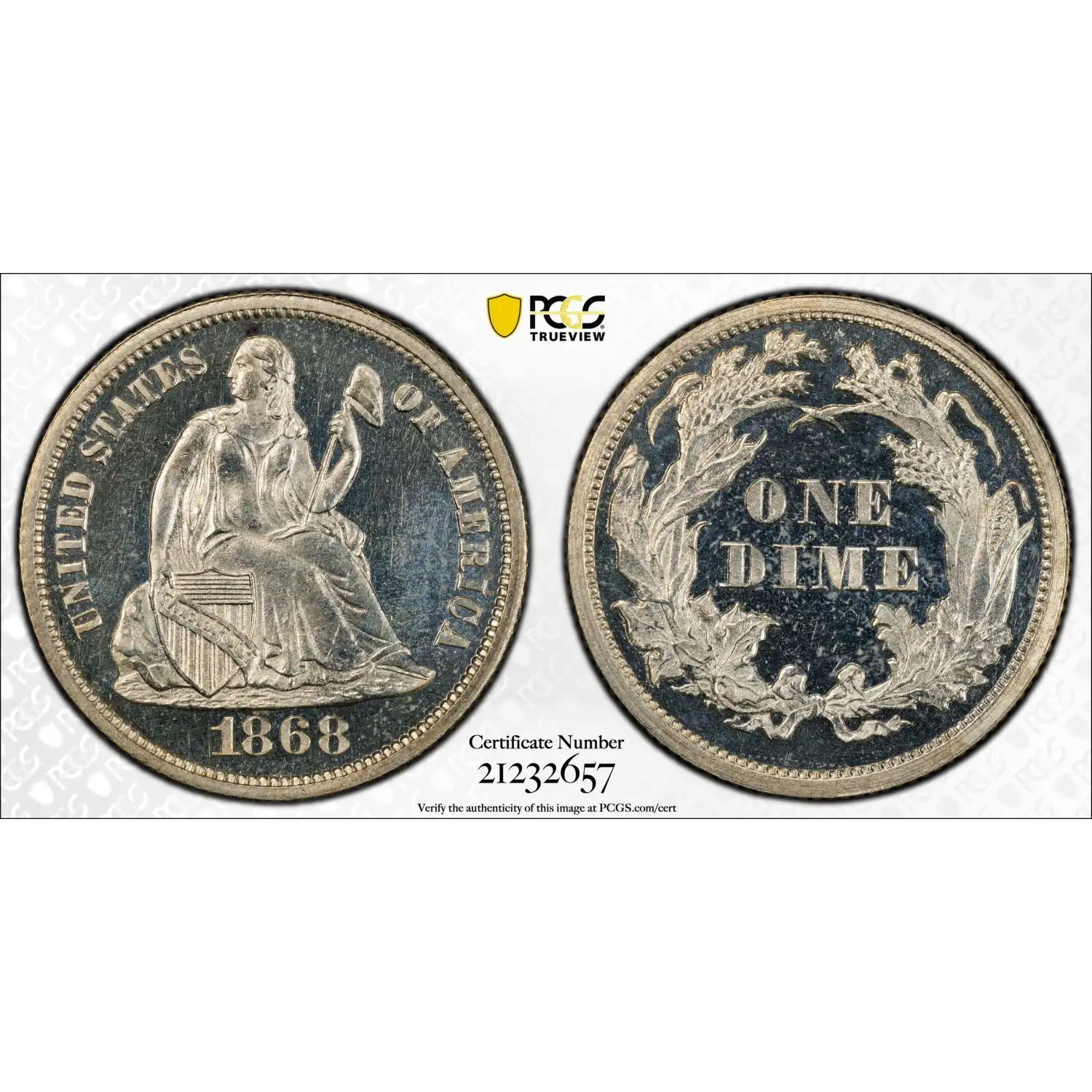 1868 Liberty Seated Dime PCGS PR-64 CAM Proof