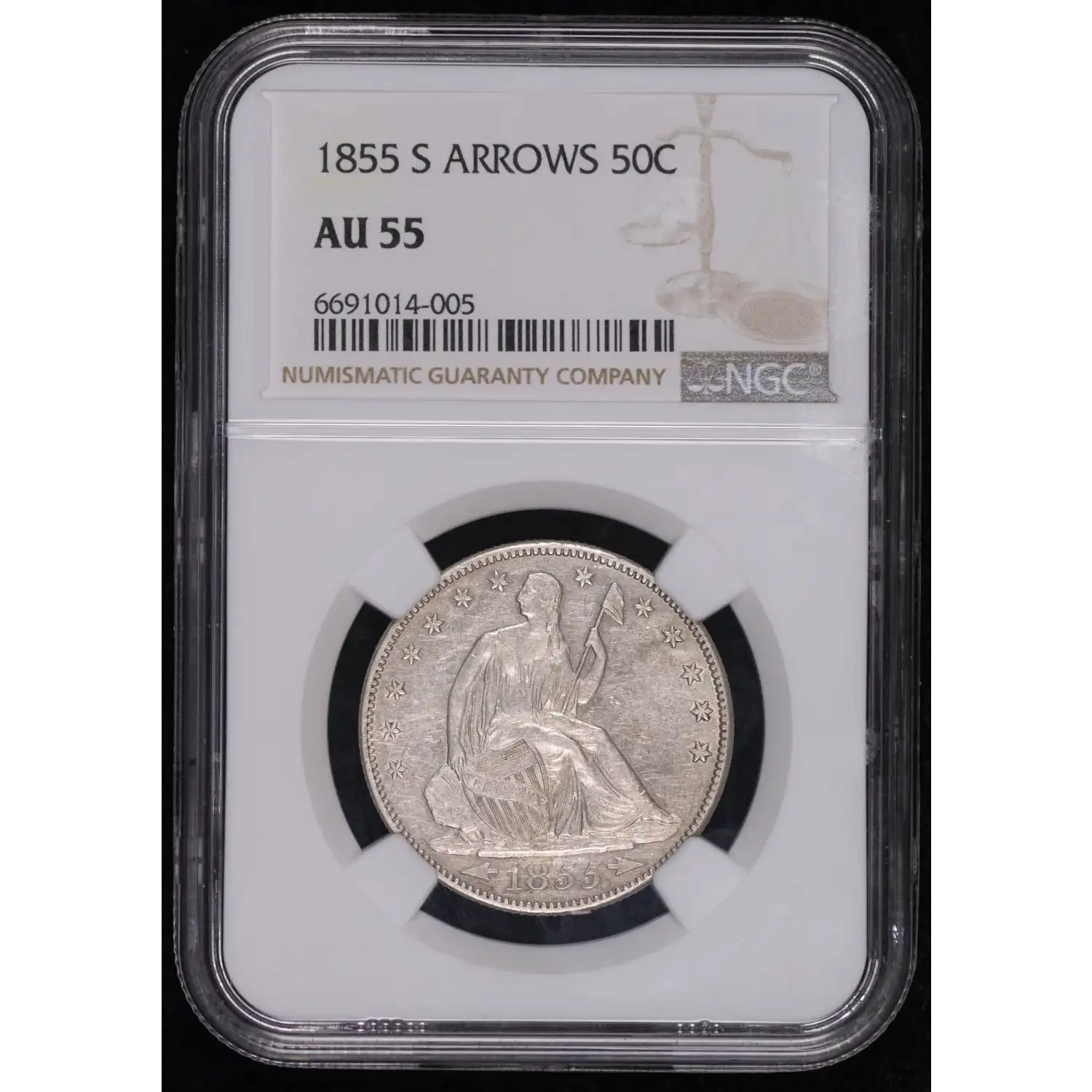 1855-S Half Dollars Liberty Seated NGC AU-55