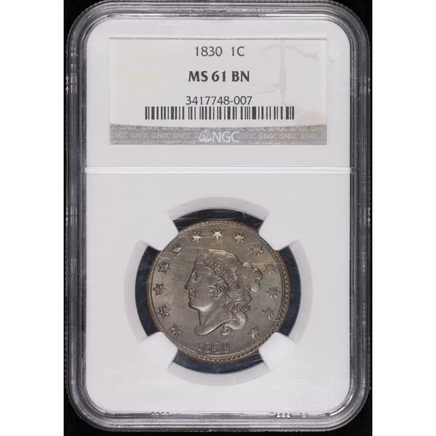 1830 Large Cents Coronet Head NGC MS-61 BN