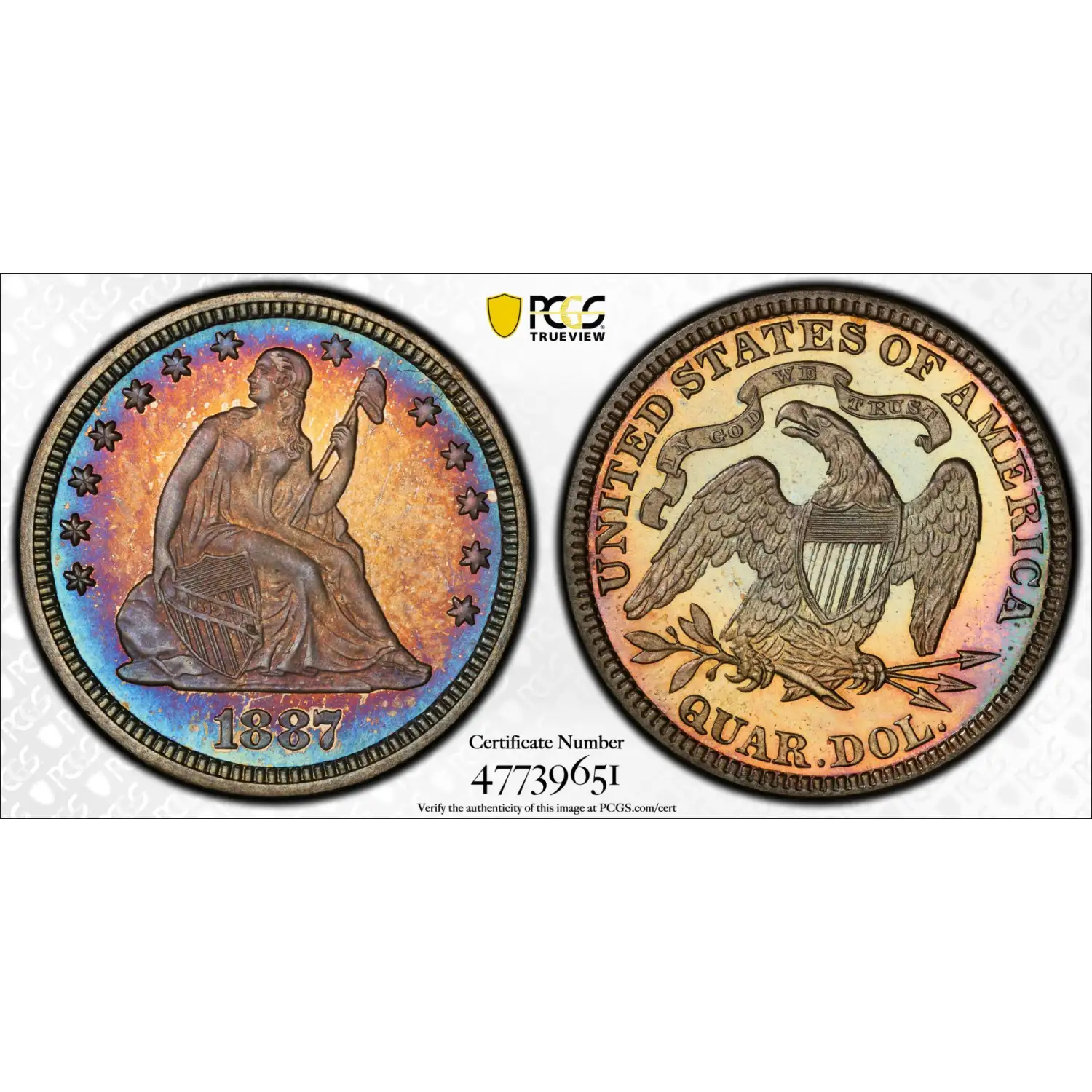 1887 Seated Liberty Quarter PCGS PR-67 Proof