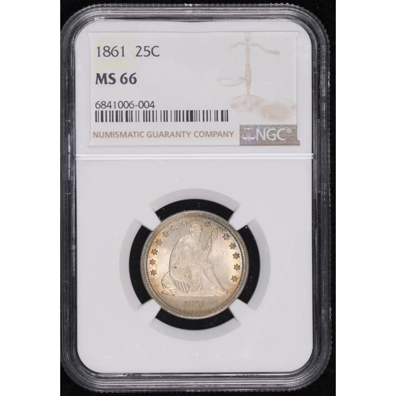 1861 Seated Liberty Quarter NGC MS-66