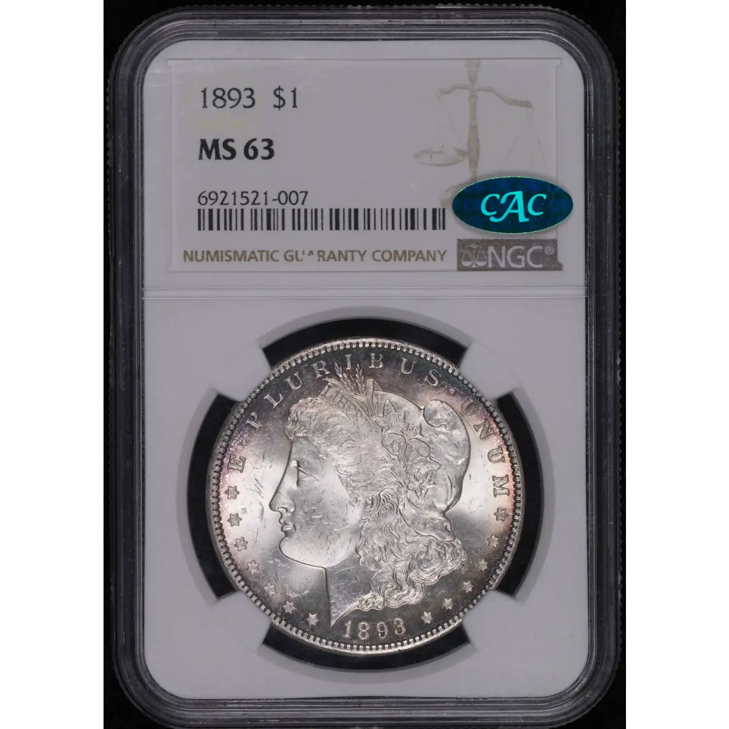1893 Morgan Silver Dollar NGC MS-63 CAC