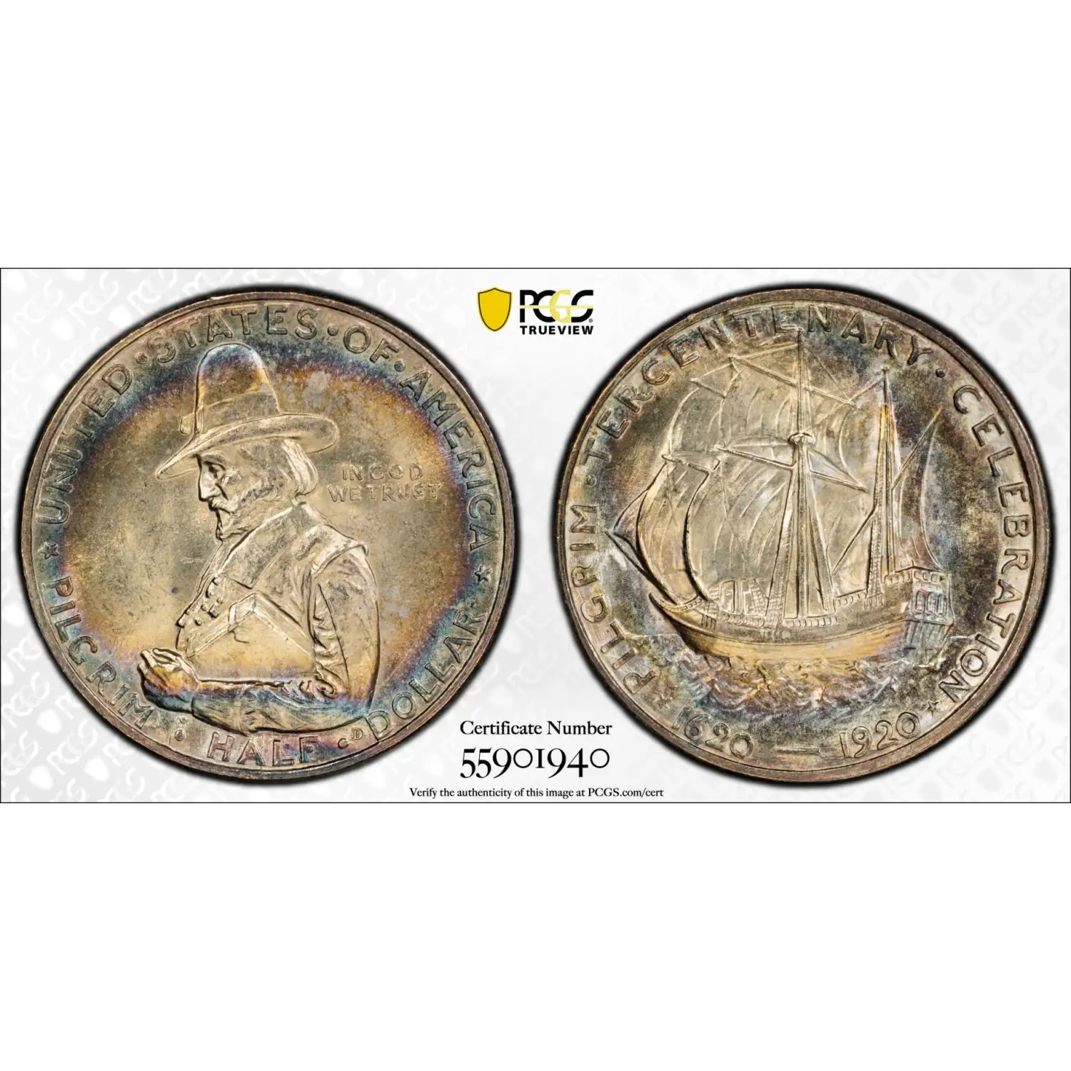 1920 Classic Commemorative Pilgrim Tercentenary PCGS MS-65 Pilgrim CAC