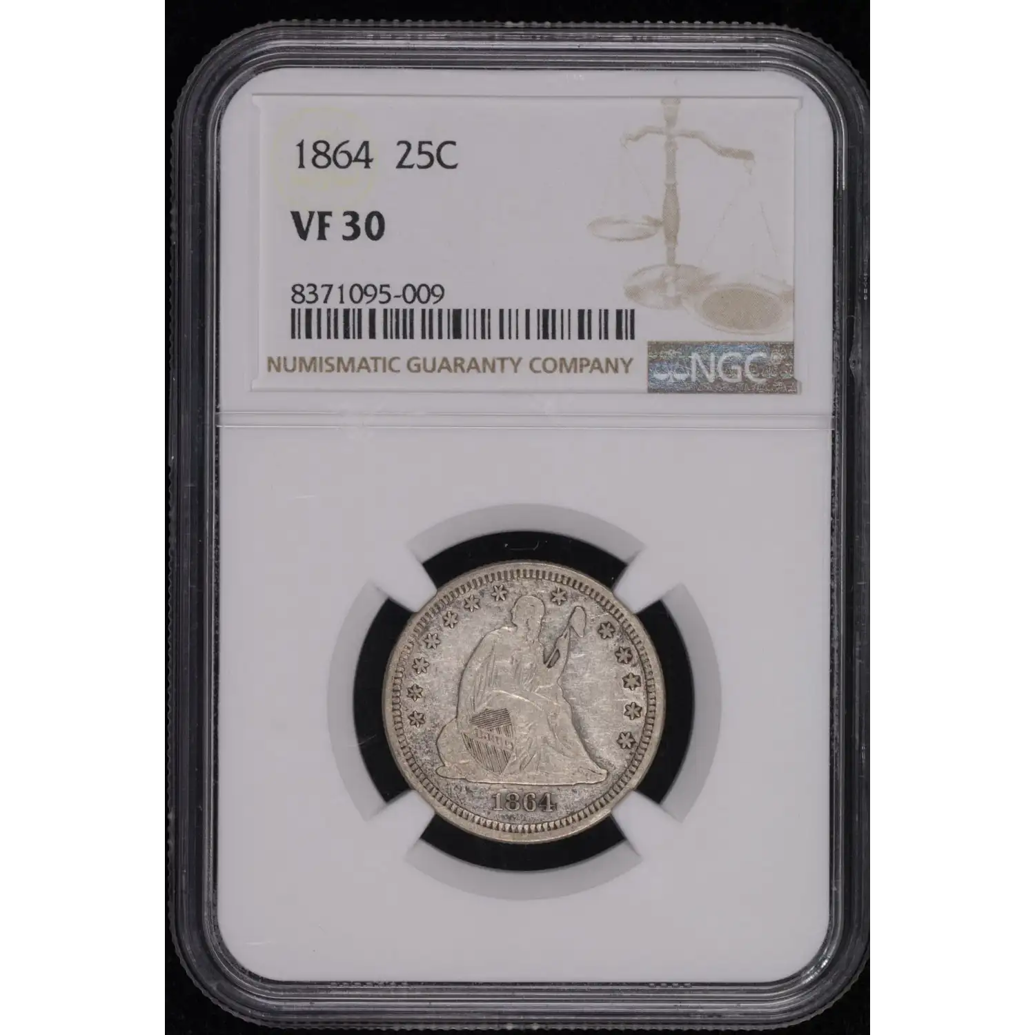 1864 Seated Liberty Quarter NGC VF-30