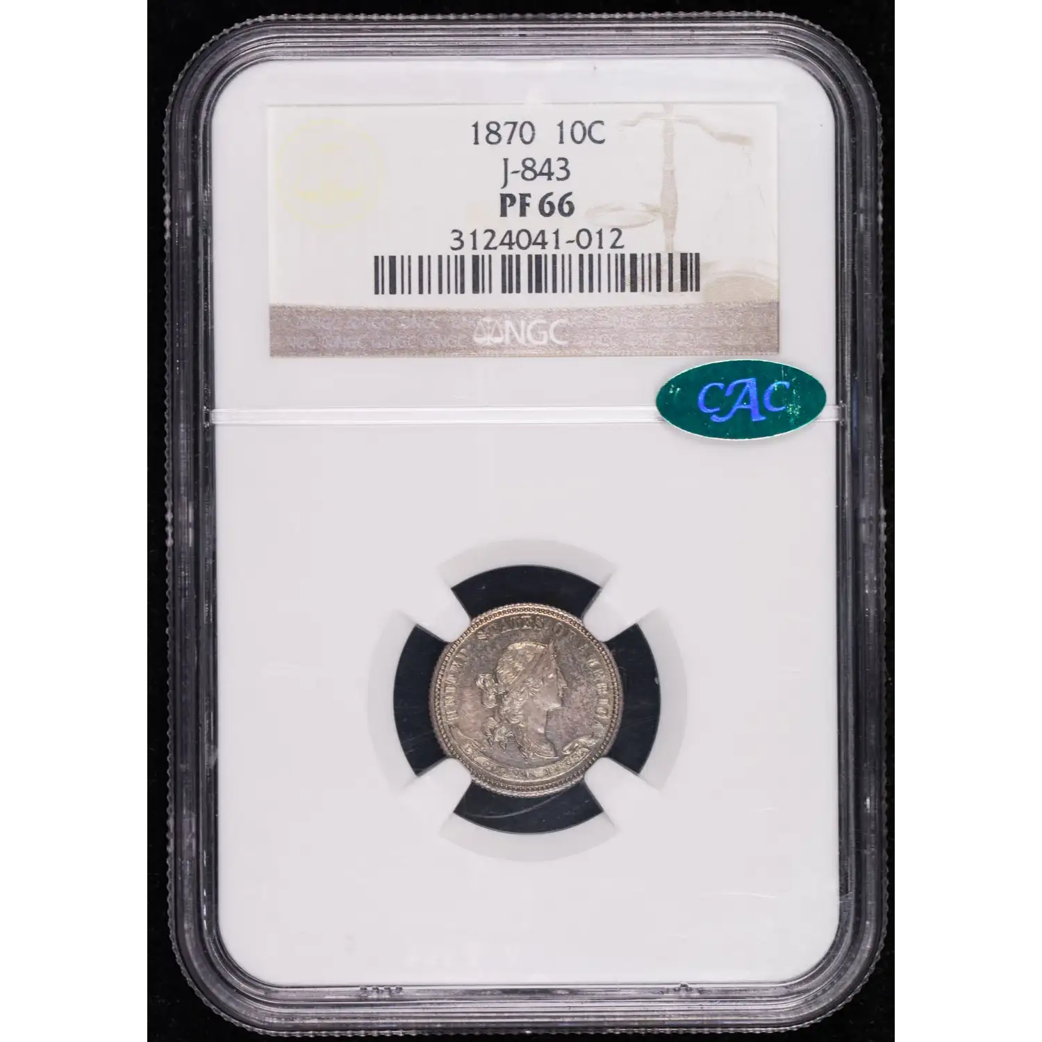 1870 Pattern Coin NGC PF-66 J-843 Proof Dime CAC