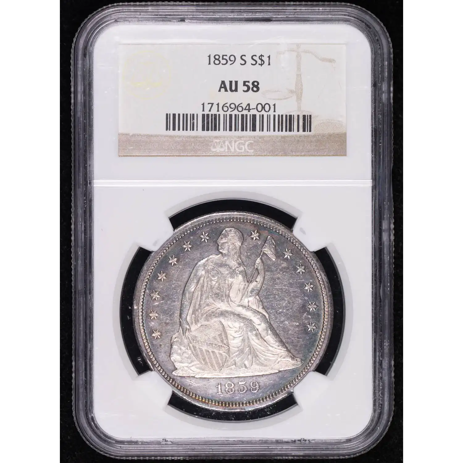1859-S Liberty Seated Silver Dollars NGC AU-58