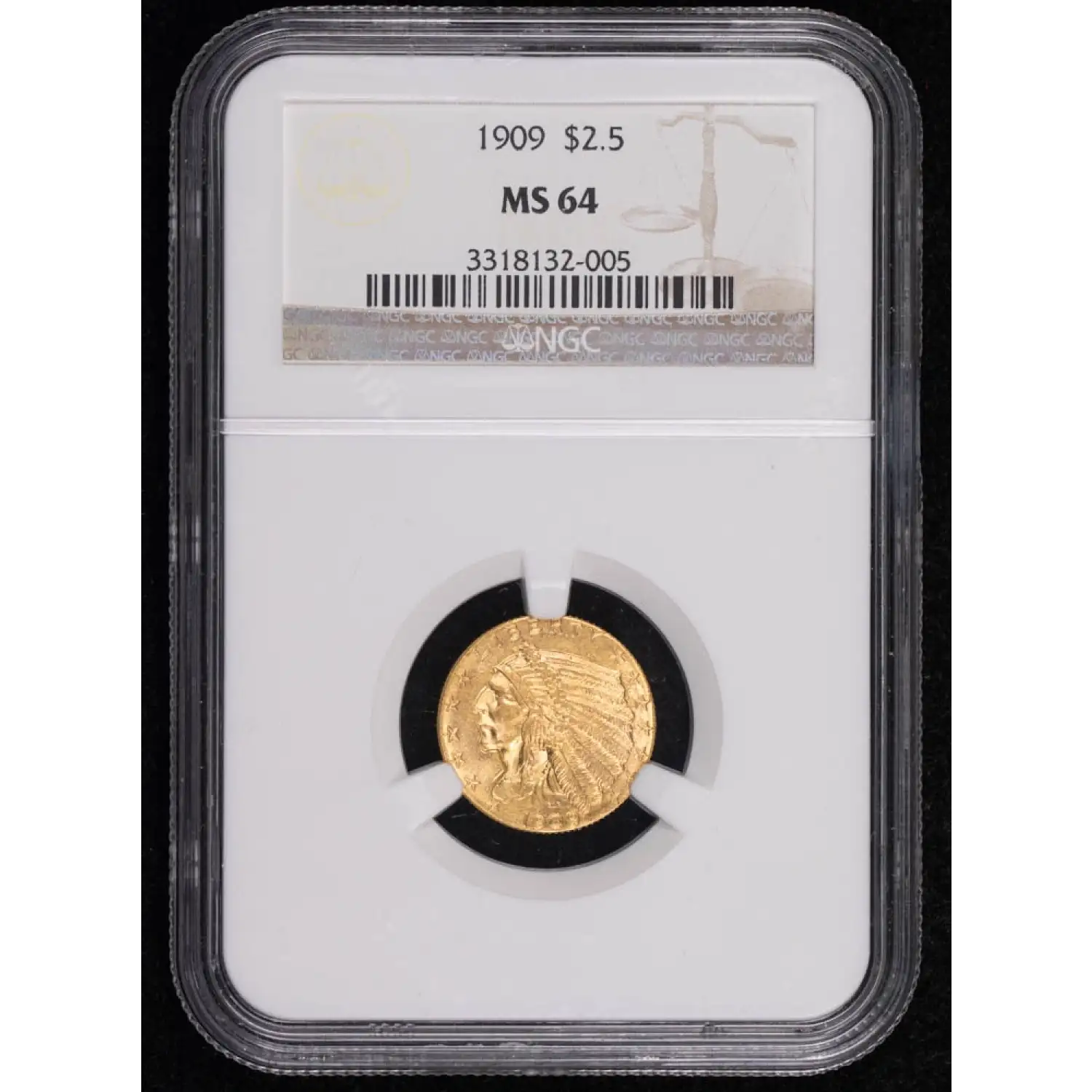 1909 Gold Quarter Eagles $2 1/2 Indian Head NGC MS-64