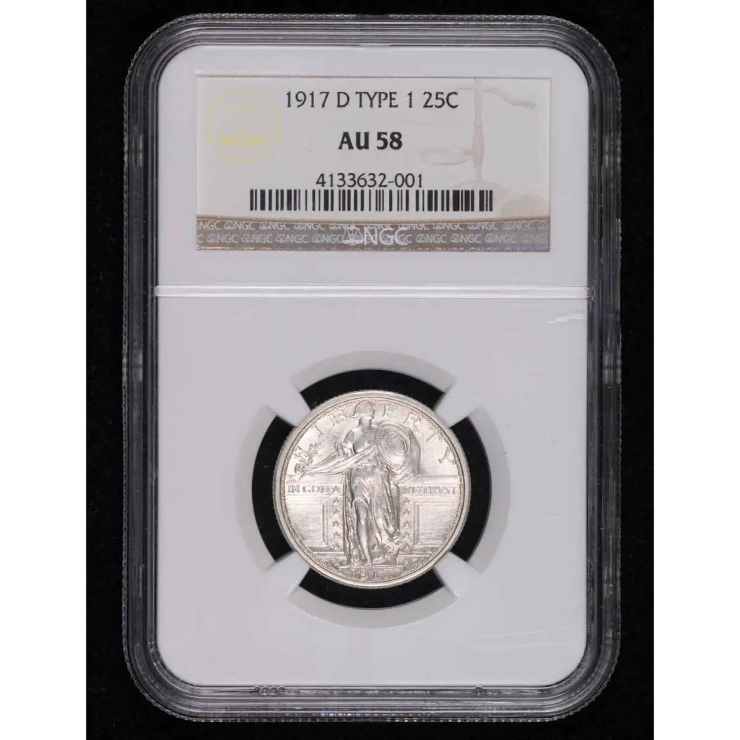 1917-D Quarter Dollars Standing Liberty Quarter NGC AU-58 Type 1