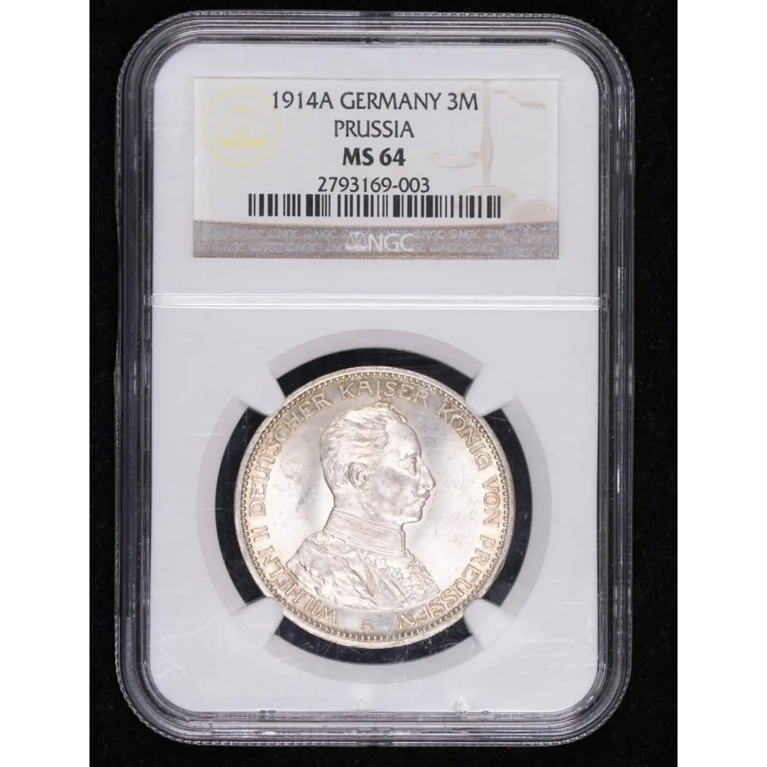1914-A GERMAN STATES Silver 3 MARK NGC MS-64 A PRUSSIA