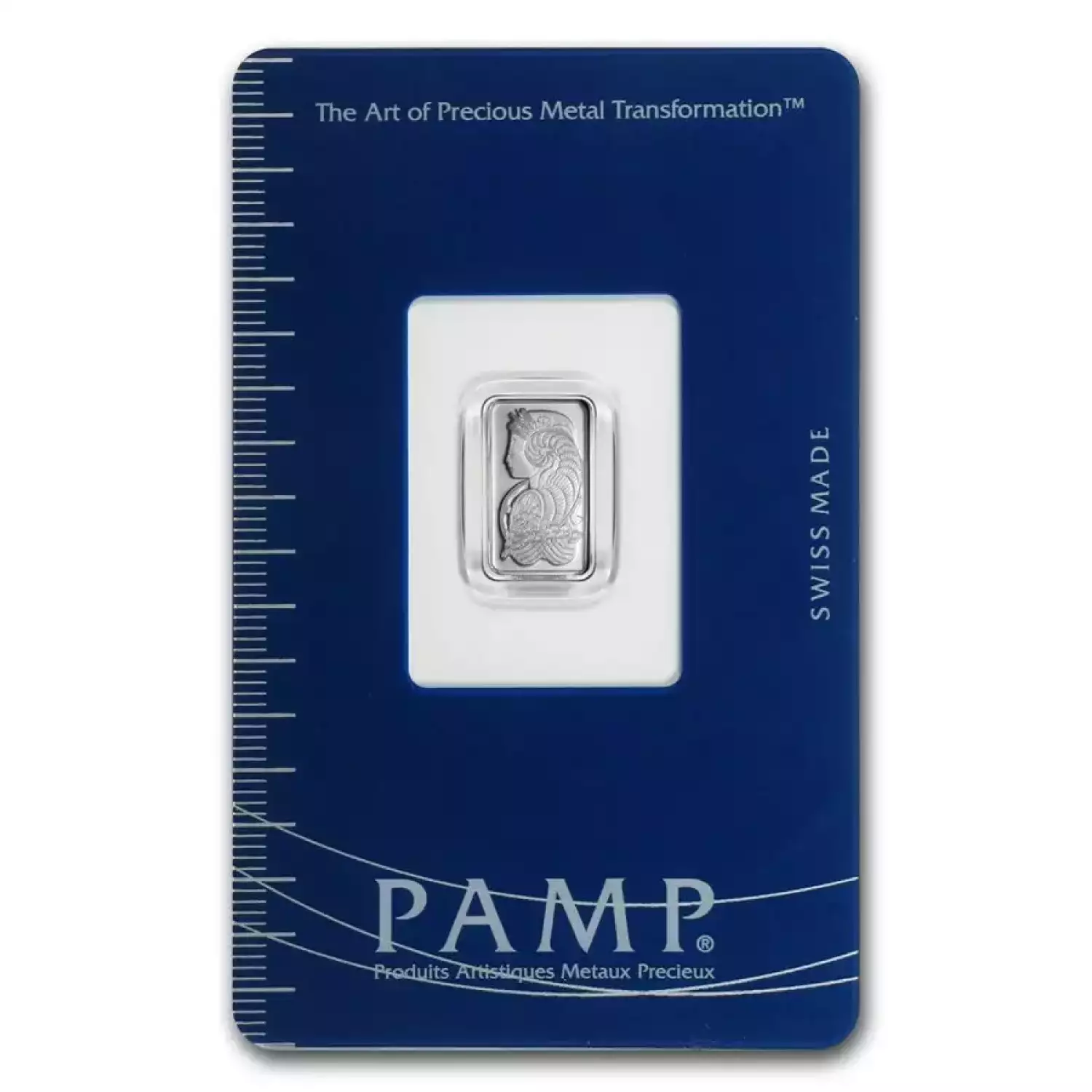 PAMP Suisse is the world’s leading independent refiner of precious metals. PAMP Platinum Bars are highly popular among investors and collectors for their pure platinum content and high-quality.Each 1g PAMP Platinum Bar – Fortuna is composed of 1 gram of .9995 fine platinum. Our choice of Assay Card which can be small or large sized card.