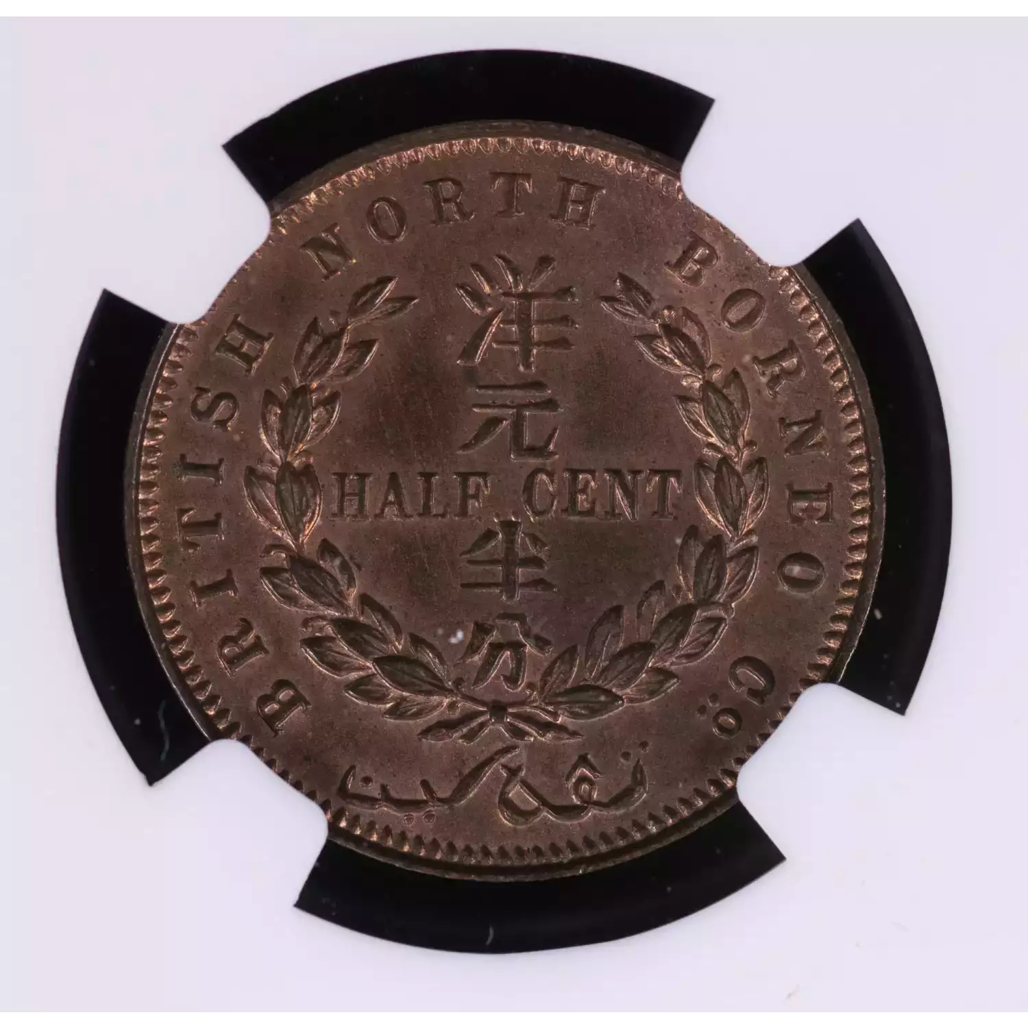 1891-H British North Borneo HALF BRITISH NORTH BORNEO Bronze 1/2 CENT NGC MS-63 RB