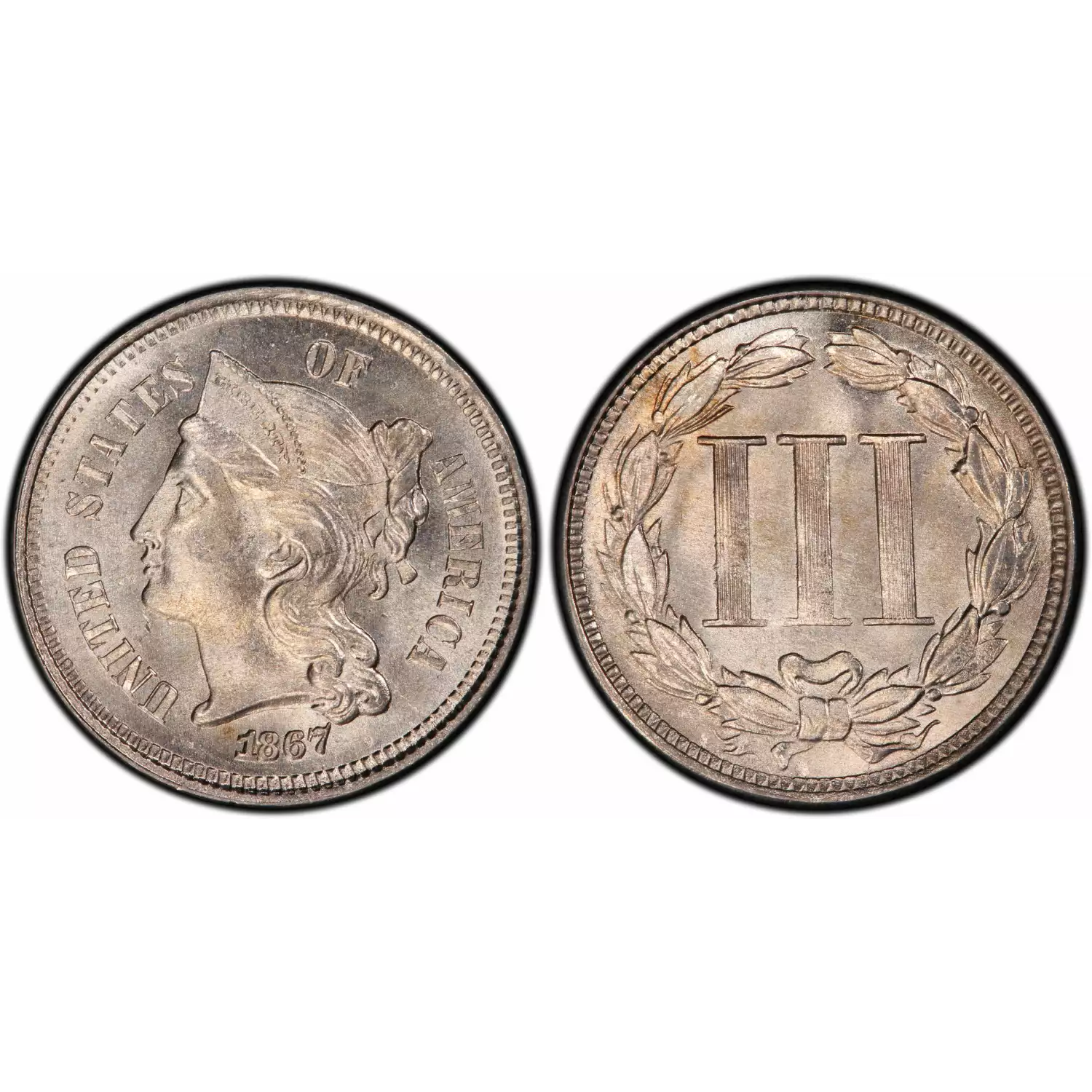 1867 Nickel Three Cent Pieces PCGS MS-65 CAC CAC