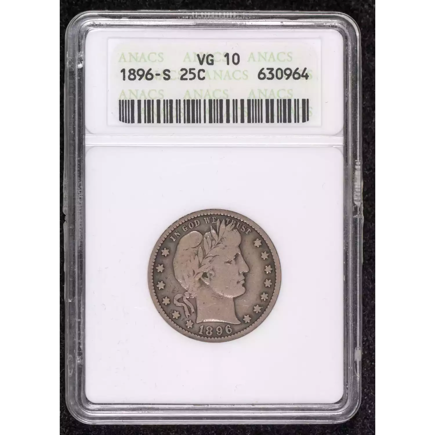 1896-S Quarter Dollars Barber or Liberty Head ANACS VG-10 SoapBox