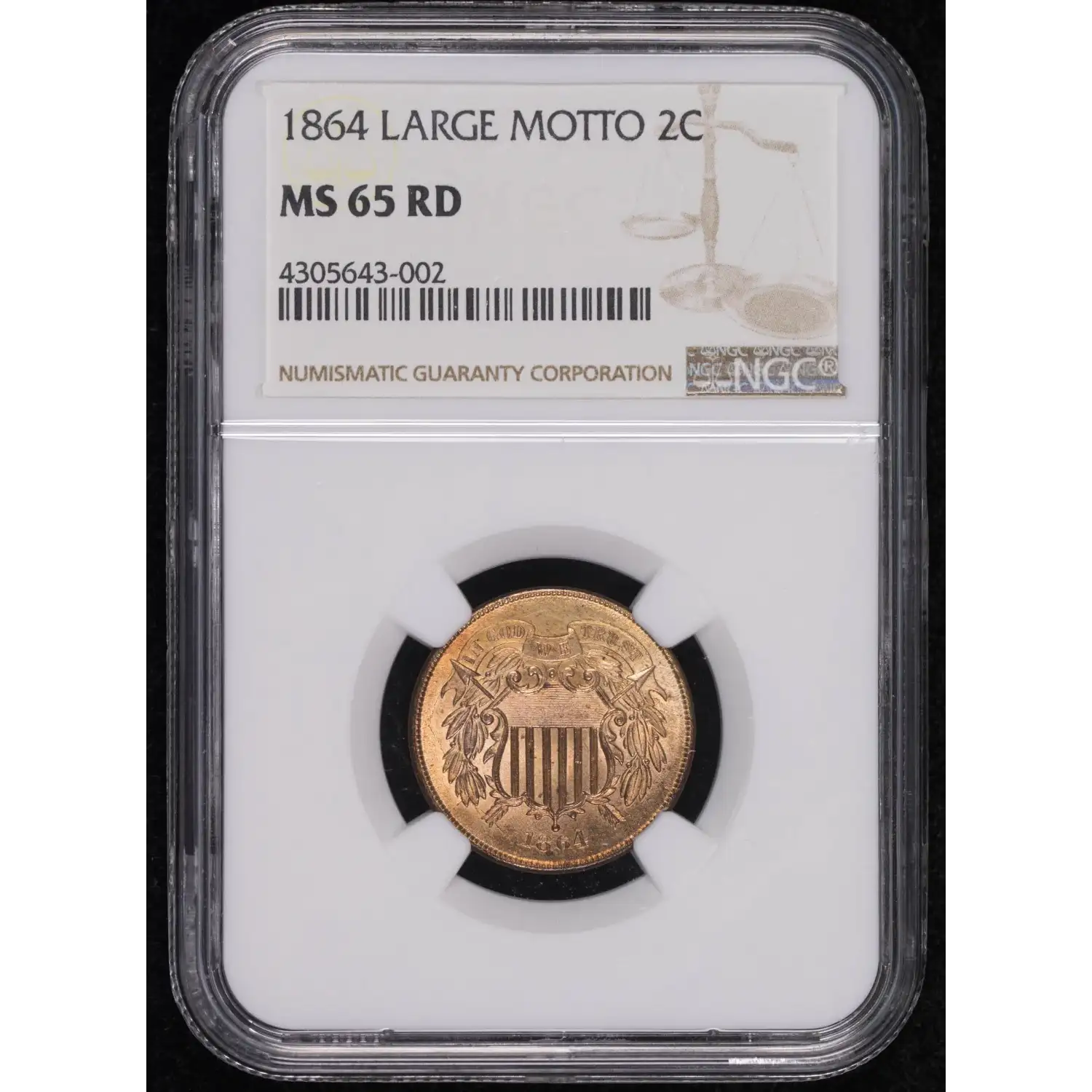 1864 Two cent pieces NGC MS-65 RD Large Motto