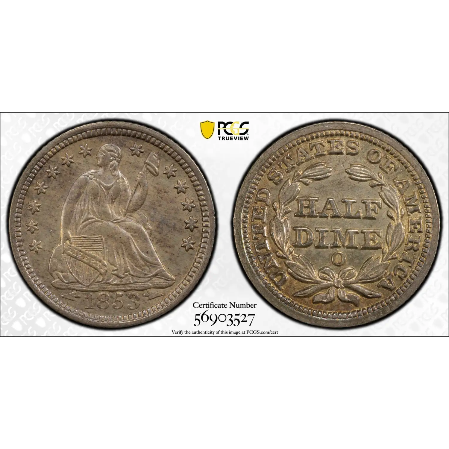 1853-O Liberty Seated Half Dime PCGS MS-65 Arrows