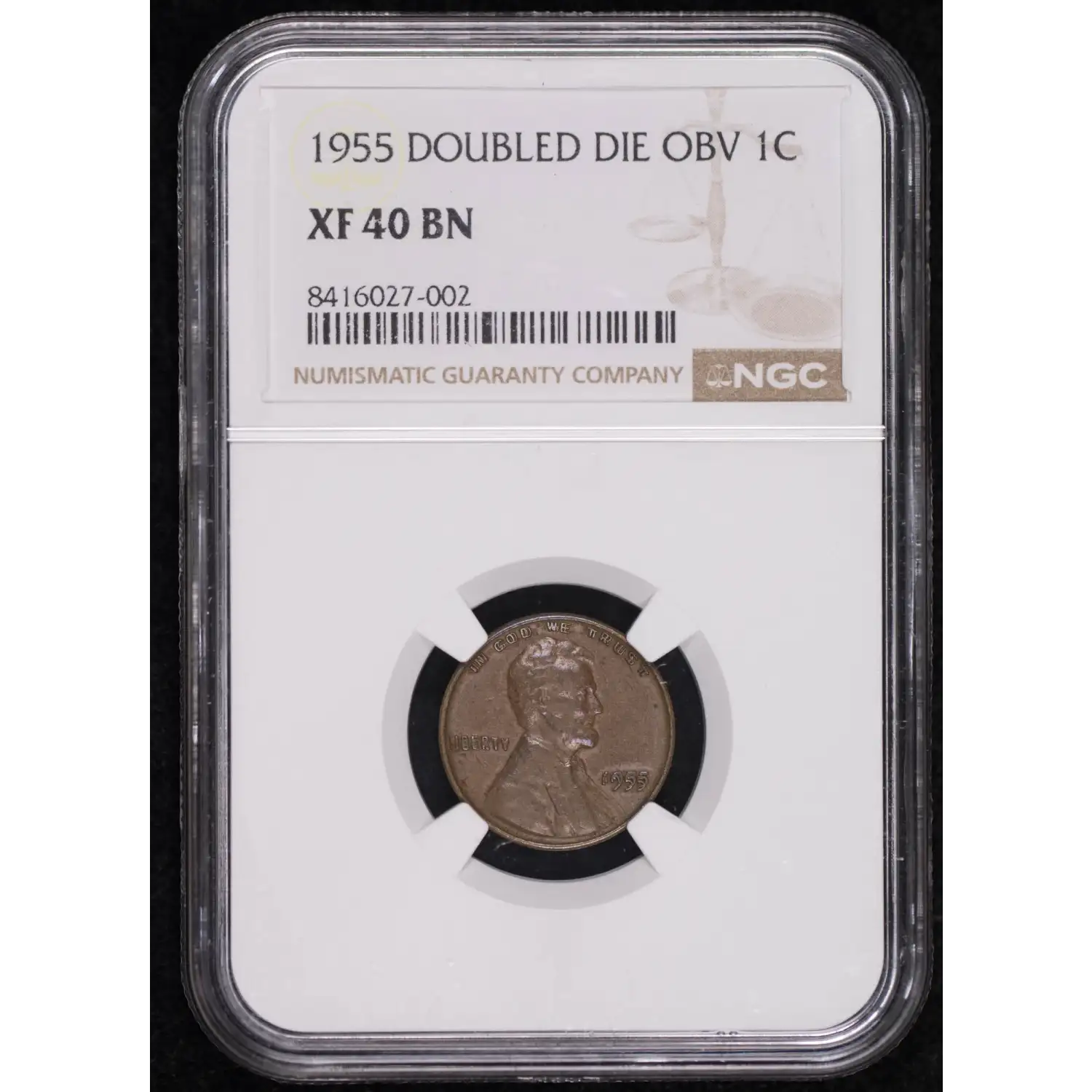 1955-Double Die Small Cents Lincoln, Wheat Ears Reverse NGC XF-40 BN