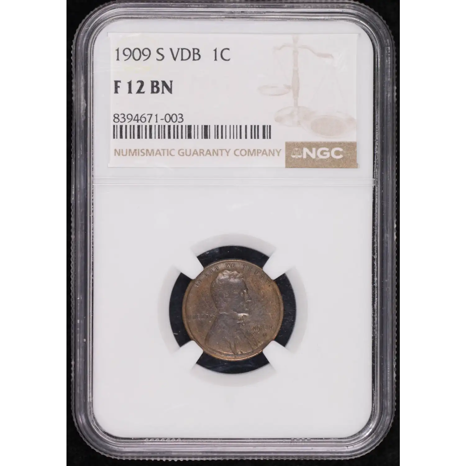 1909-S VDB Small Cents Lincoln, Wheat Ears Reverse NGC F-12 BN