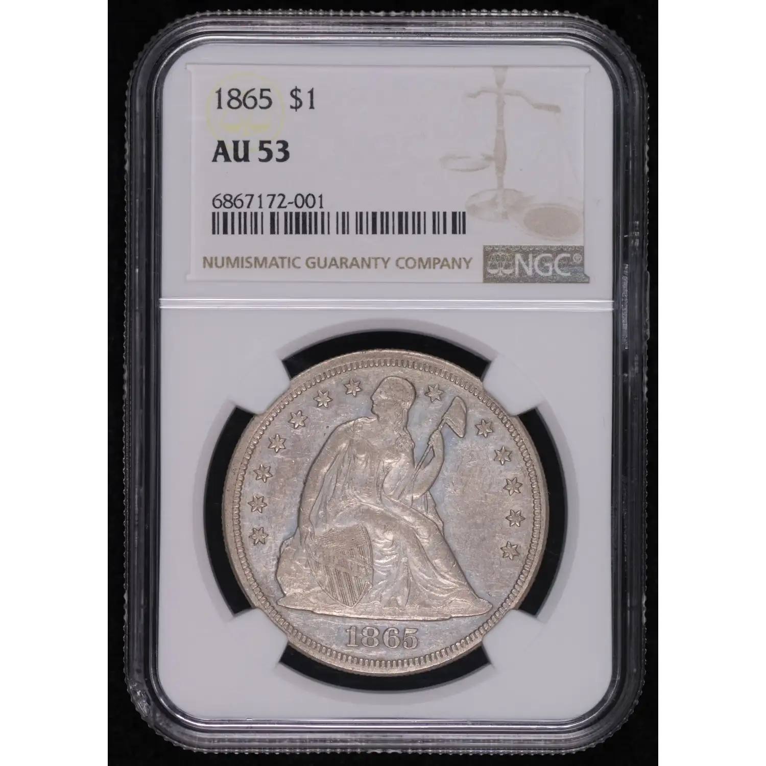 1865 Liberty Seated Silver Dollars NGC AU-53