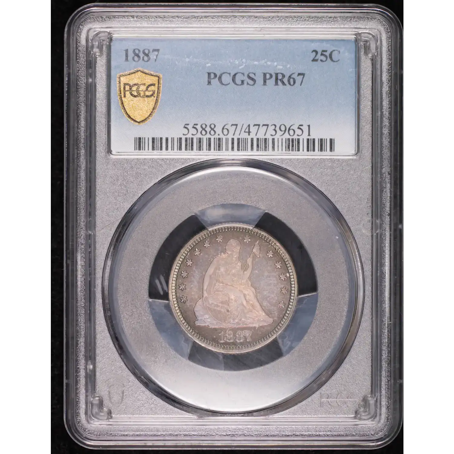 1887 Seated Liberty Quarter PCGS PR-67 Proof