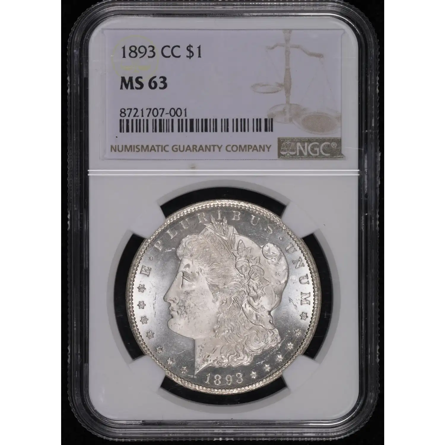 1893-CC Morgan Silver Dollar NGC MS-63