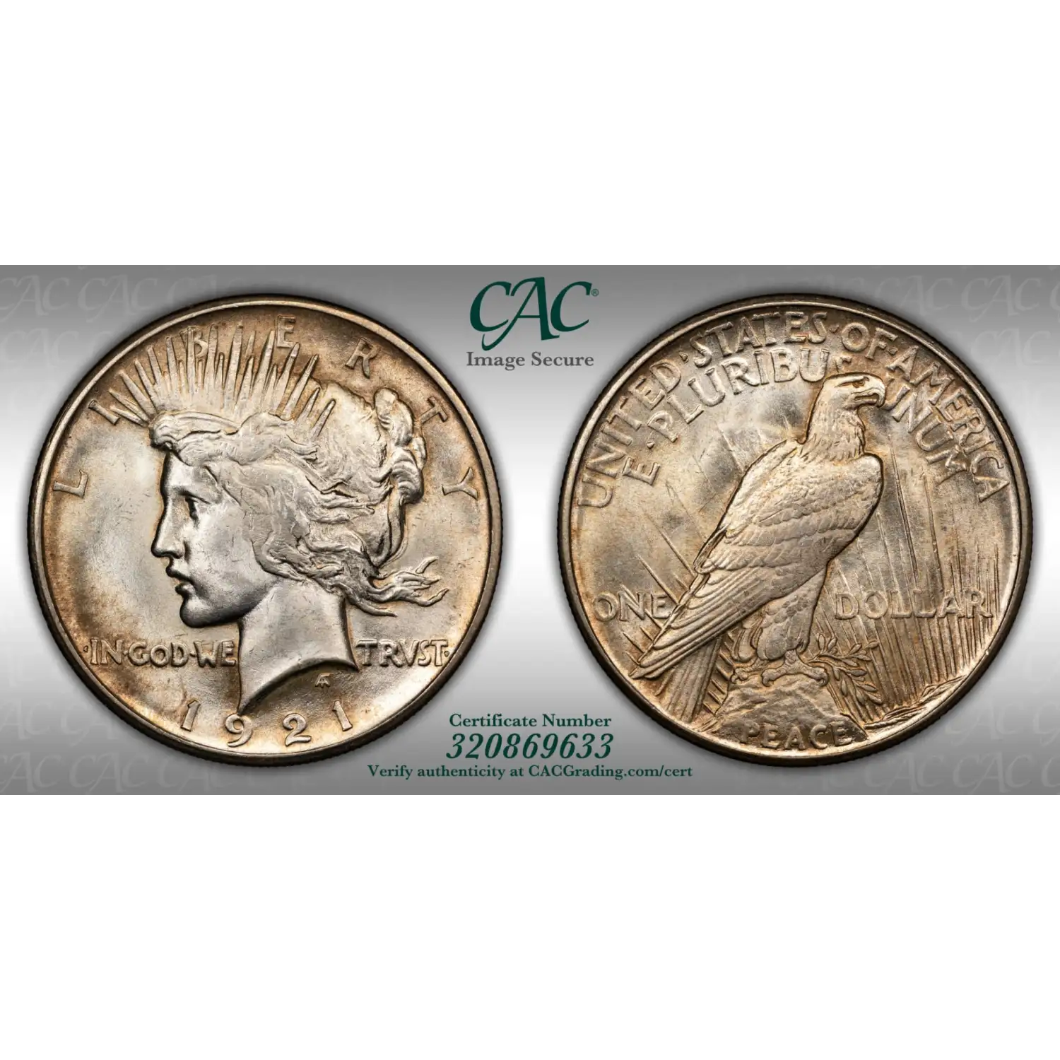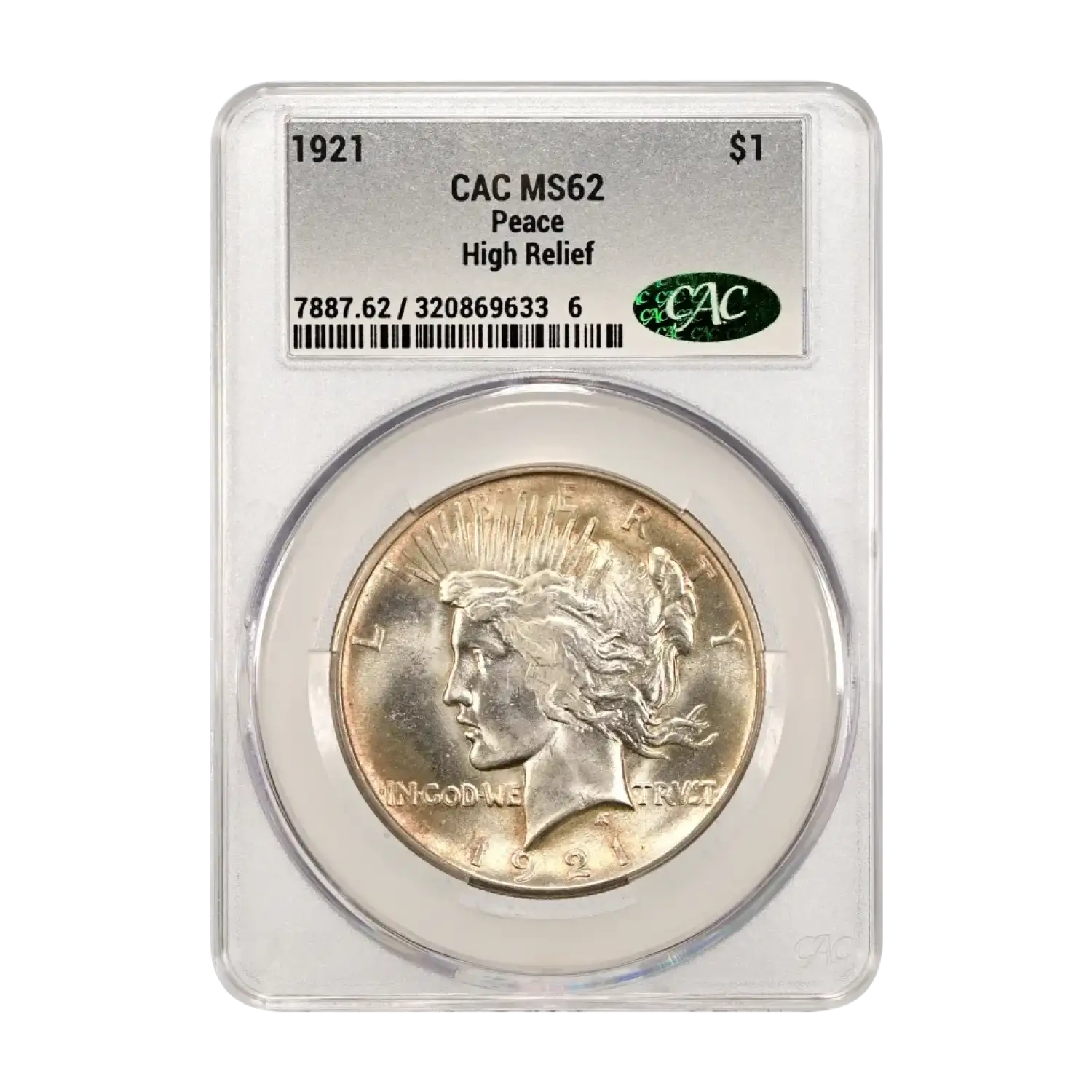 1921 Peace Silver Dollar CACG MS 62 Peace High Relief CAC