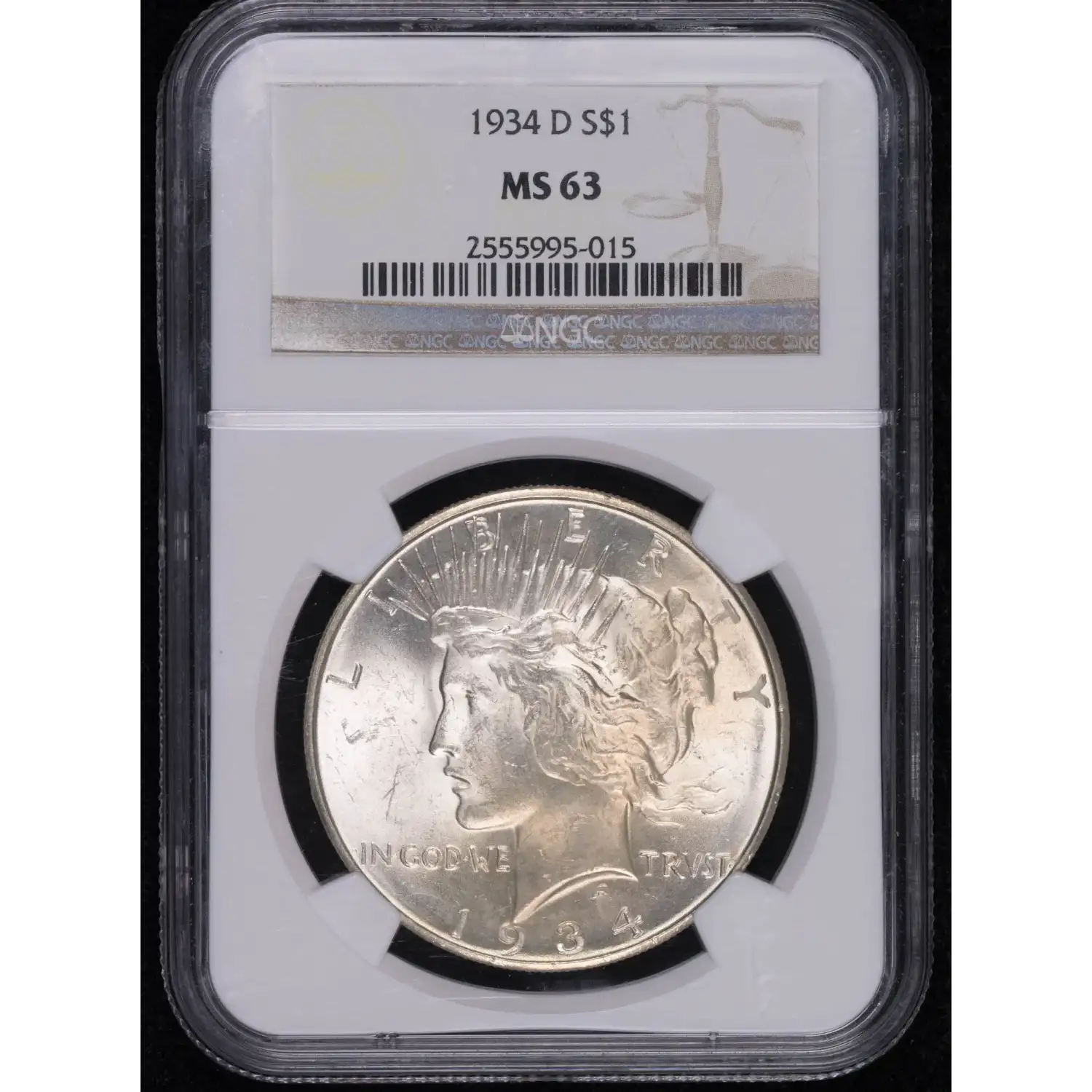 1934-D Peace Silver Dollar NGC MS-63