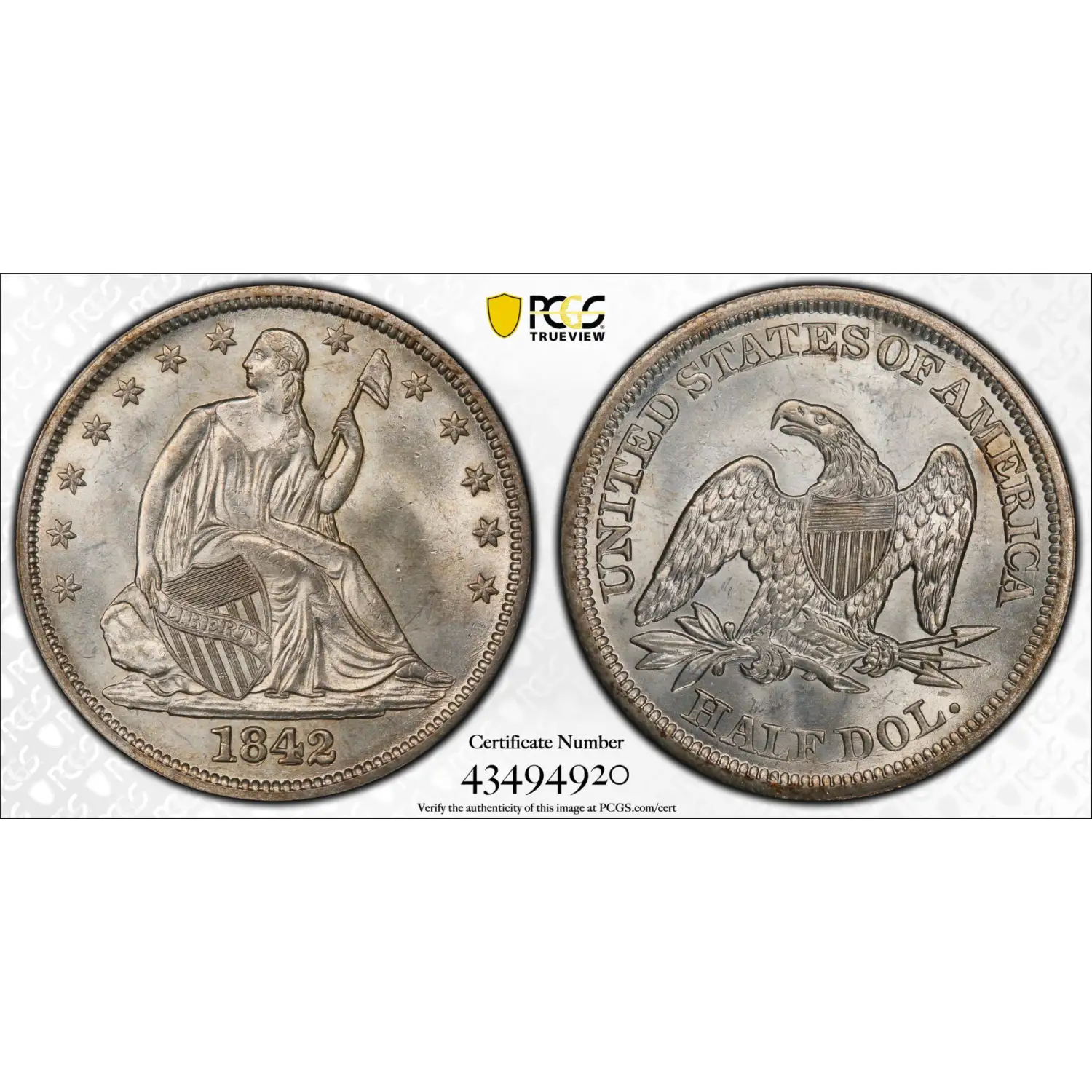 1842 Half Dollars Liberty Seated PCGS MS-65 Medium Date